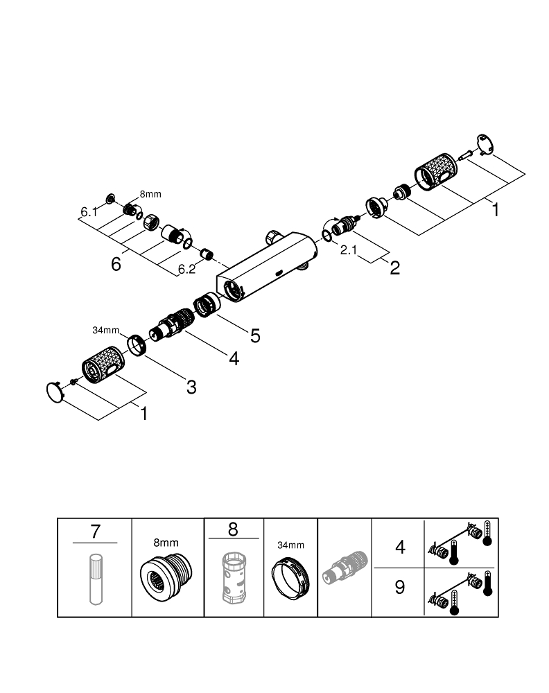 - Élément thermostatique GROHE TurboStat pour un réglage de température rapide et précis