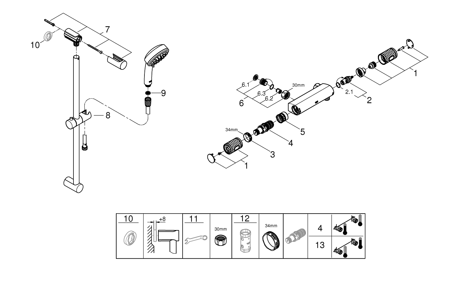 GROHE Grohtherm mitigeur de douche thermostatique apparent avec barre de douche et douchette chromé