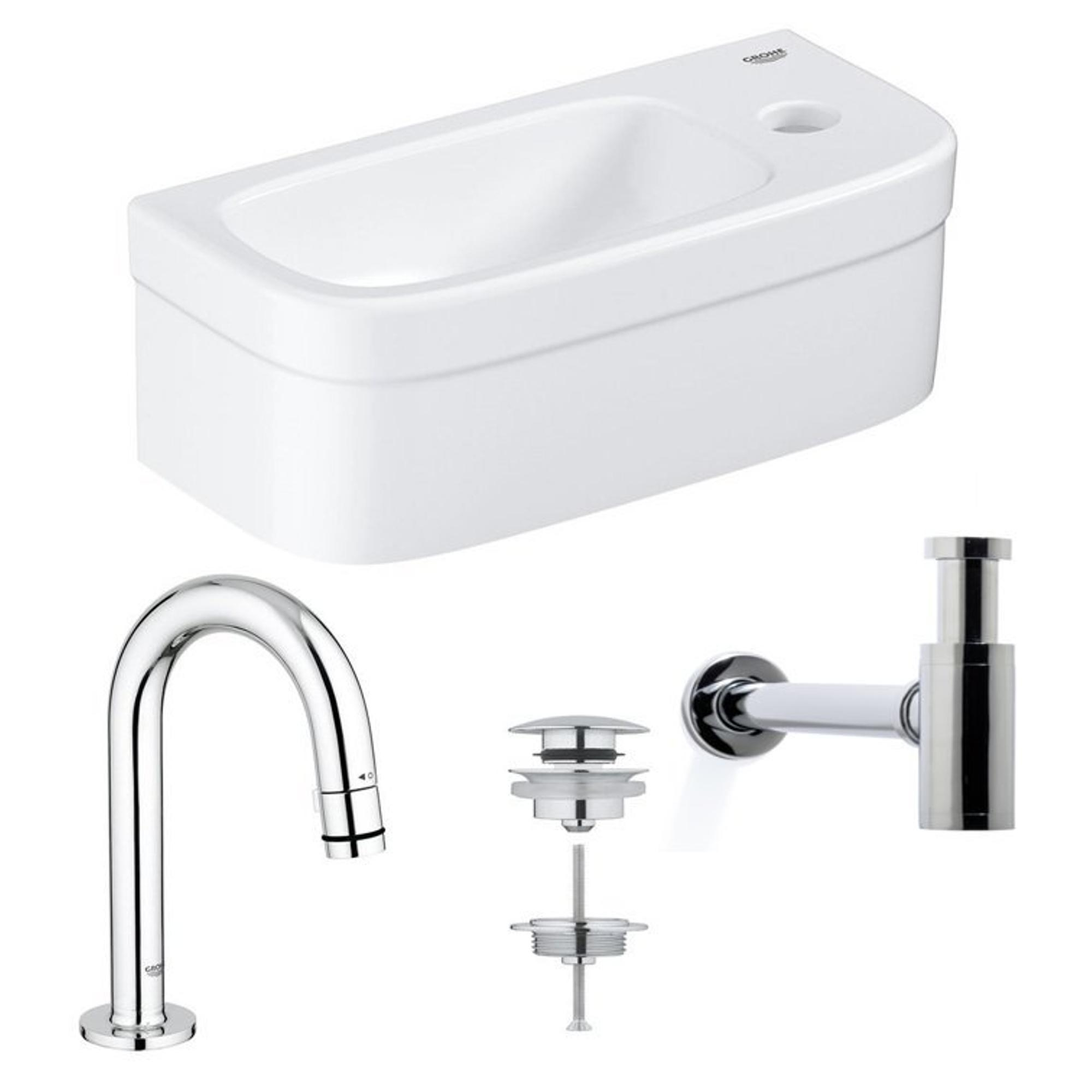 - GROHE Euro ensemble lave-mains 37x18cm courbé robinet GROHE siphon Saniclass bonde Chrome Blanc complet pour WC ou petite salle de bains
