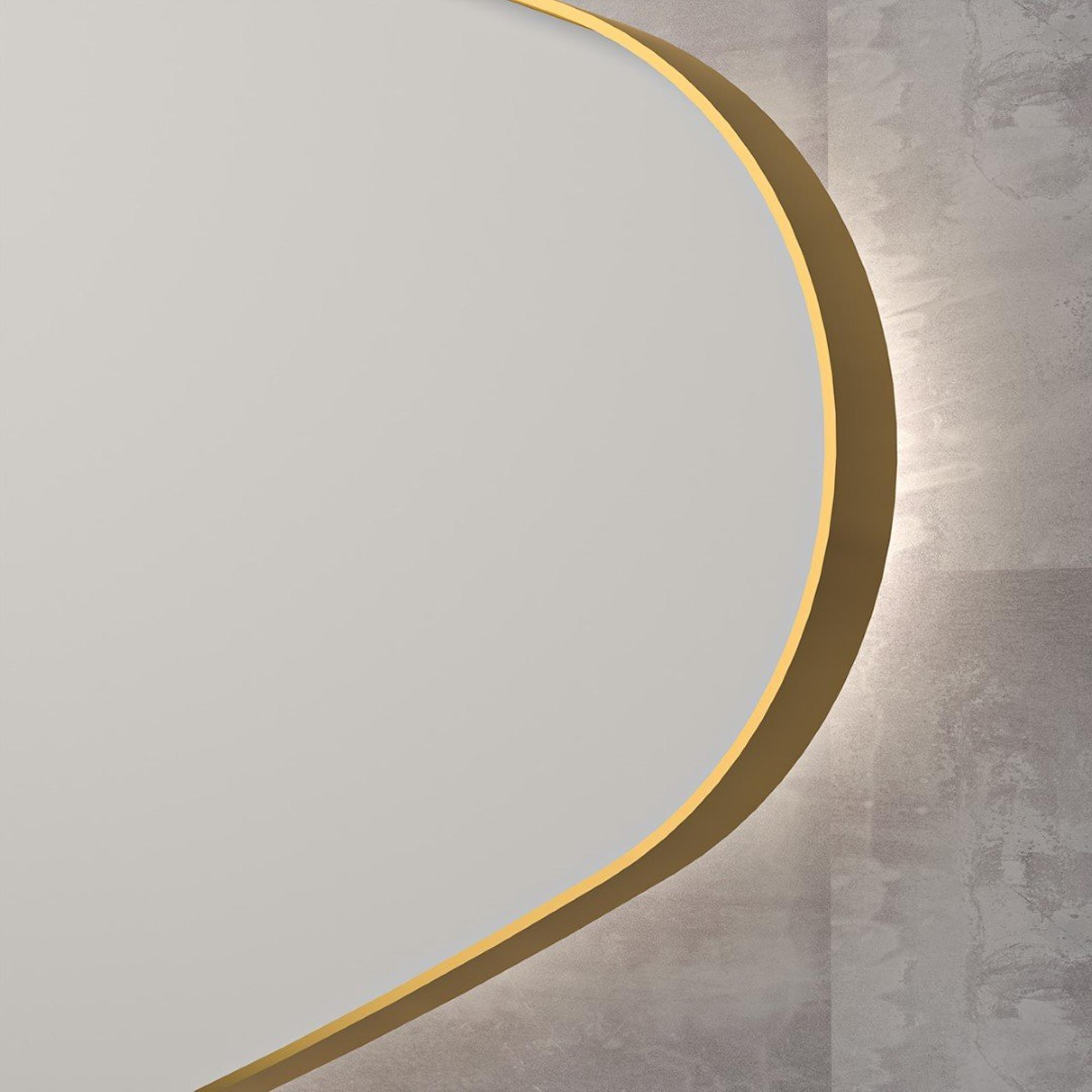 Le miroir INK SP23 dégage un style inégalé avec son design moderne et son apparence luxueuse. La forme organique et la finition Or mat ajoutent une touche de glamour à chaque pièce où ce miroir est installé. L’éclairage LED en dessous et au-dessus crée une ambiance chaleureuse et peut être ajusté à la couleur et à la luminosité souhaitées, ce qui rend ce miroir parfait pour chaque humeur.
