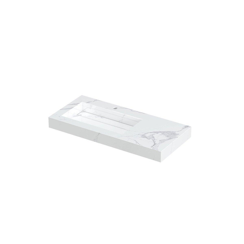 INK Pitch lavabo - 100x45x9cm - 1 cuve à gauche - 1 trou de robinet - bonde céramique Statuario brillant