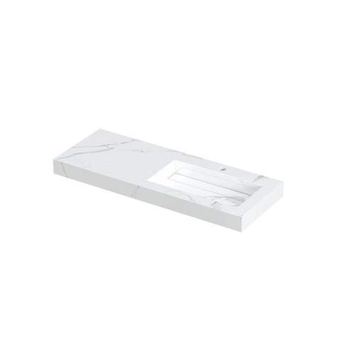 INK Pitch lavabo - 120x45x9cm - 1 cuve à droite - 1 trou de robinet - bonde céramique Statuario brillant