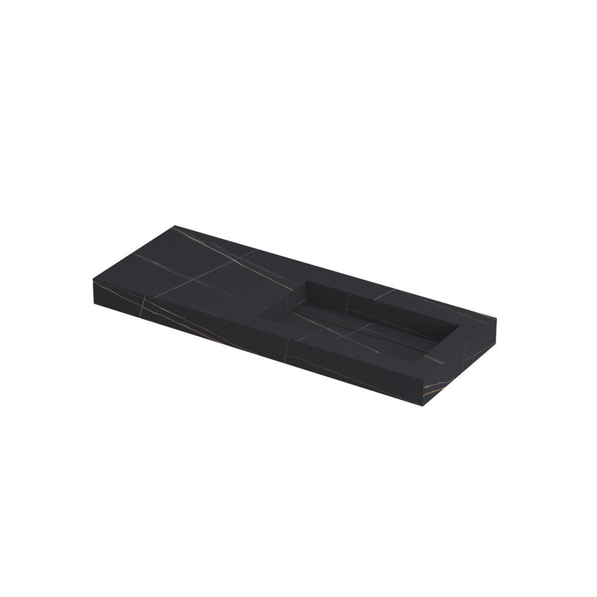 INK Pitch lavabo - 120x45x9cm - 1 bassin à droite - 0 trous de robinet - bonde céramique Lauren noir mat