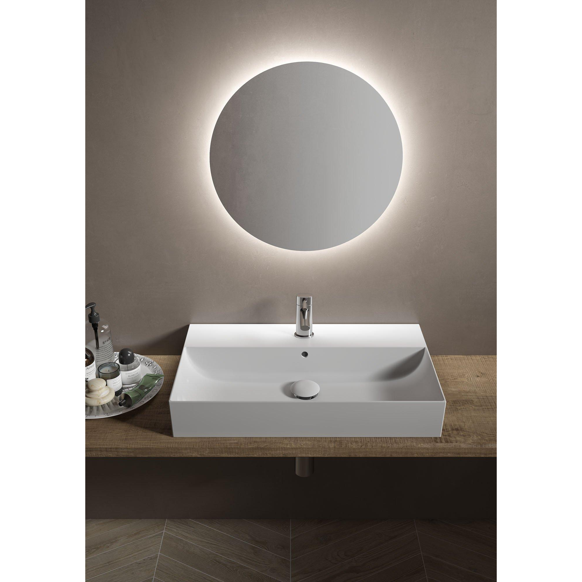 - Adaptée à une installation sur un plan vasque ou un meuble de salle de bains.