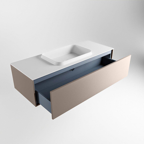 MONDIAZ ERIN Ensemble de meuble - 120cm - Smoke - 1 tiroir - lavabo au centre - 0 trous de robinet - Talc