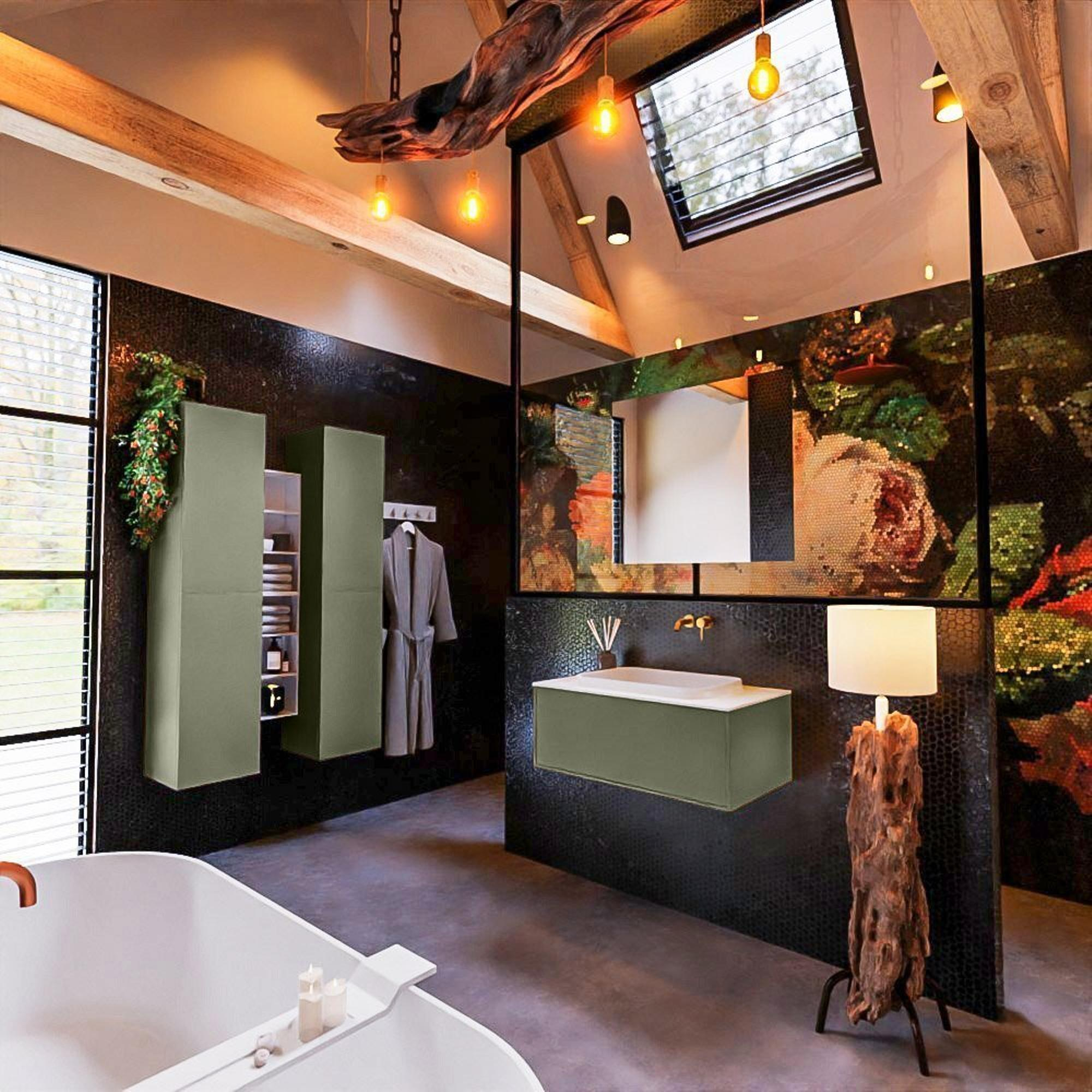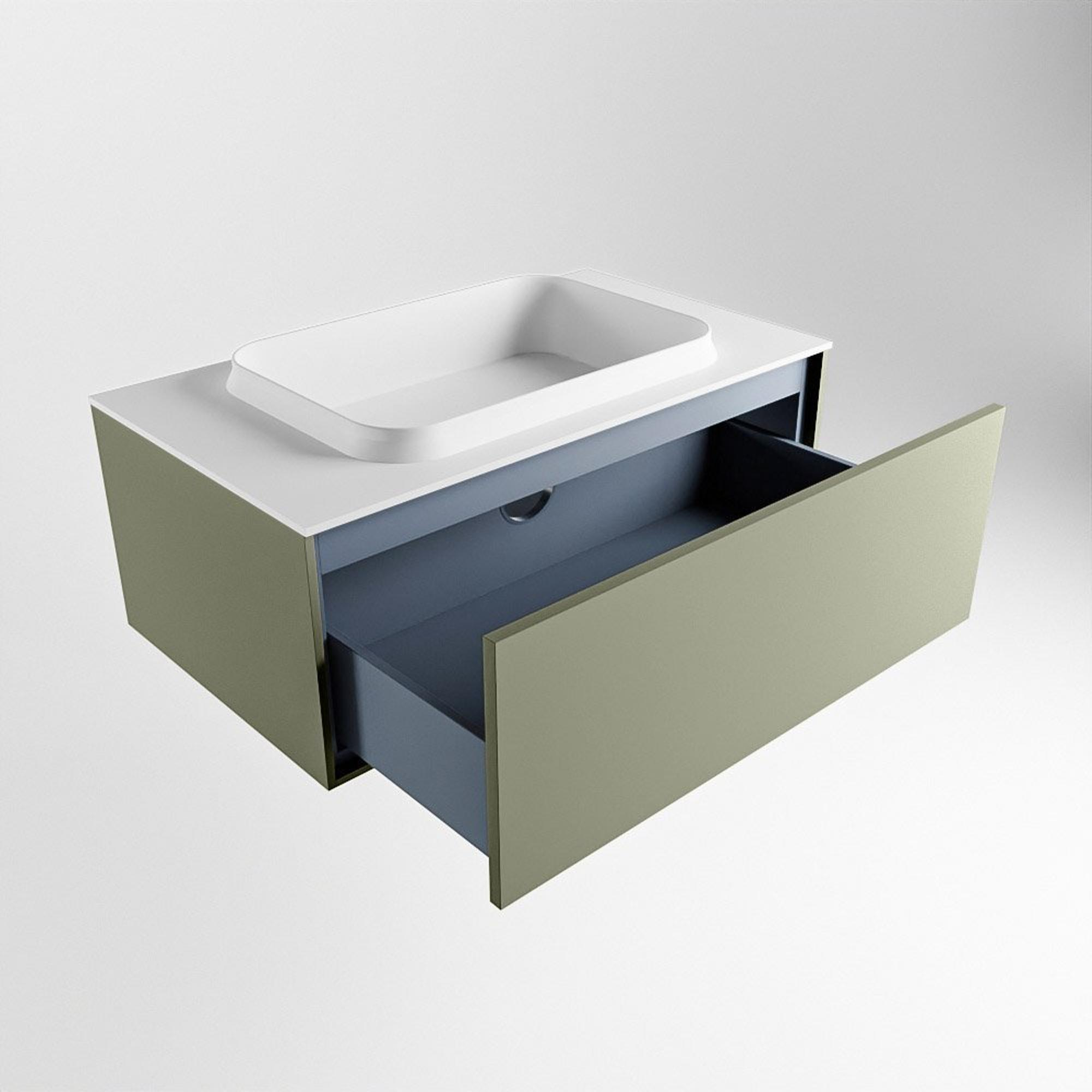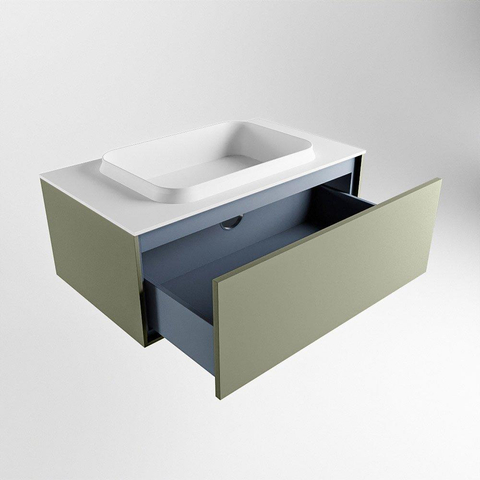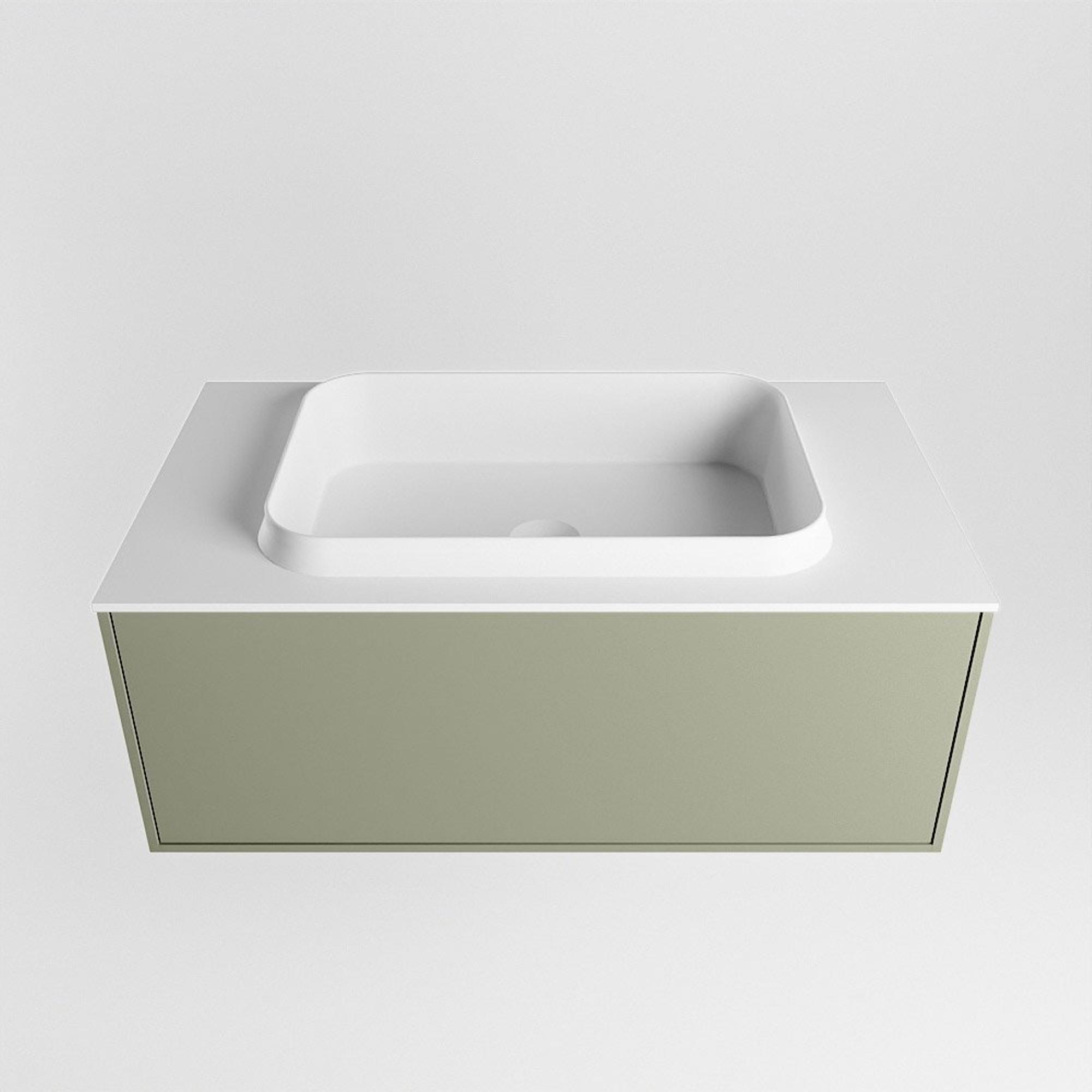 MONDIAZ ERIN Ensemble de meuble - 80cm - Armée - 1 tiroir - lavabo au centre - 0 trous de robinet - Talc