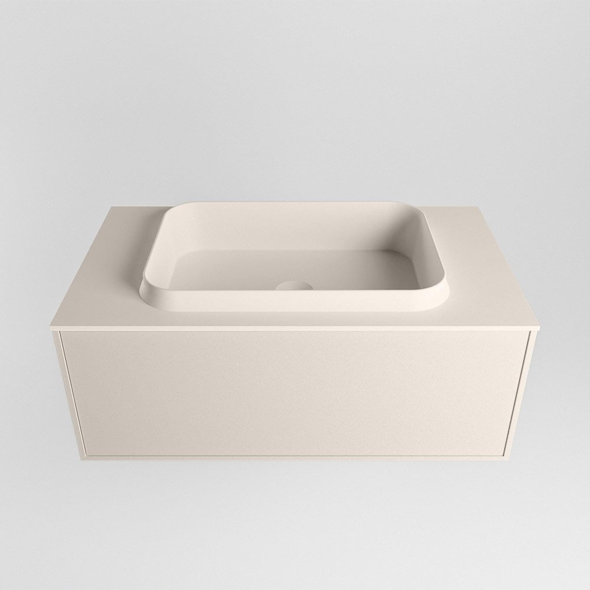 MONDIAZ ERIN Ensemble meuble de salle de bains - 80cm - Linen - 1 tiroir - vasque centrale - 0 trous de robinet - Linen
