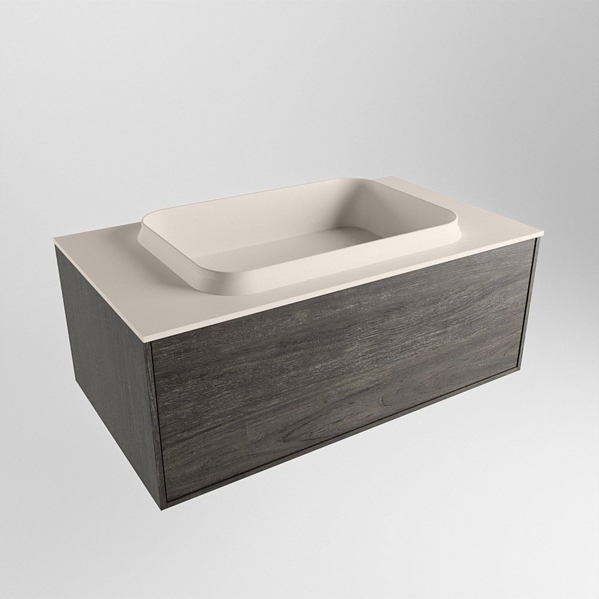 MONDIAZ ERIN Ensemble de meuble - 80cm - Marron foncé - 1 tiroir - lavabo au centre - 0 trous de robinet - Lin