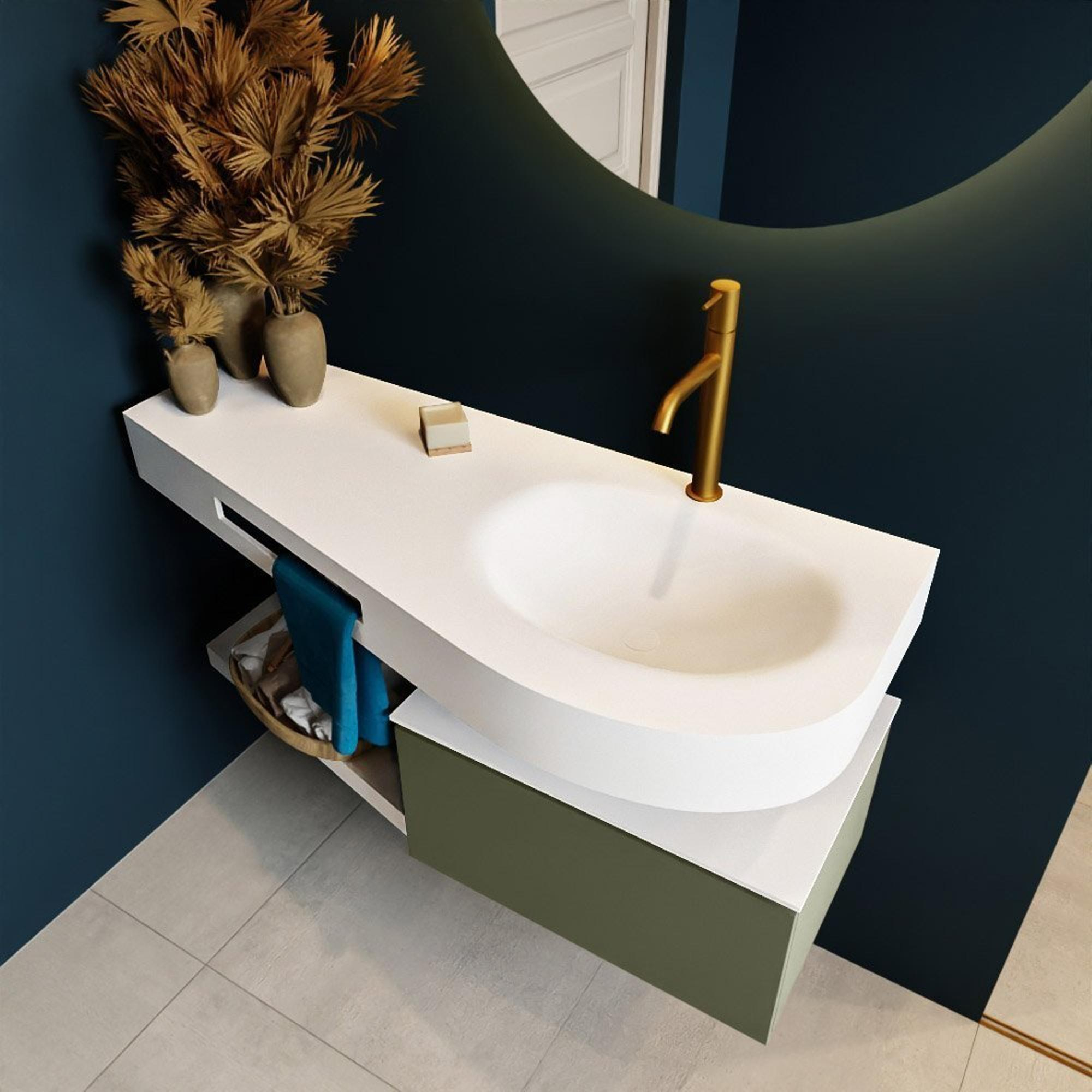 MONDIAZ RIVA Ensemble de meuble salle de bain - 120x50x30cm - 1 tiroir - MDF Army mat - push to open - 1 trou de robinet - lavabo à droite - solid surface talc
