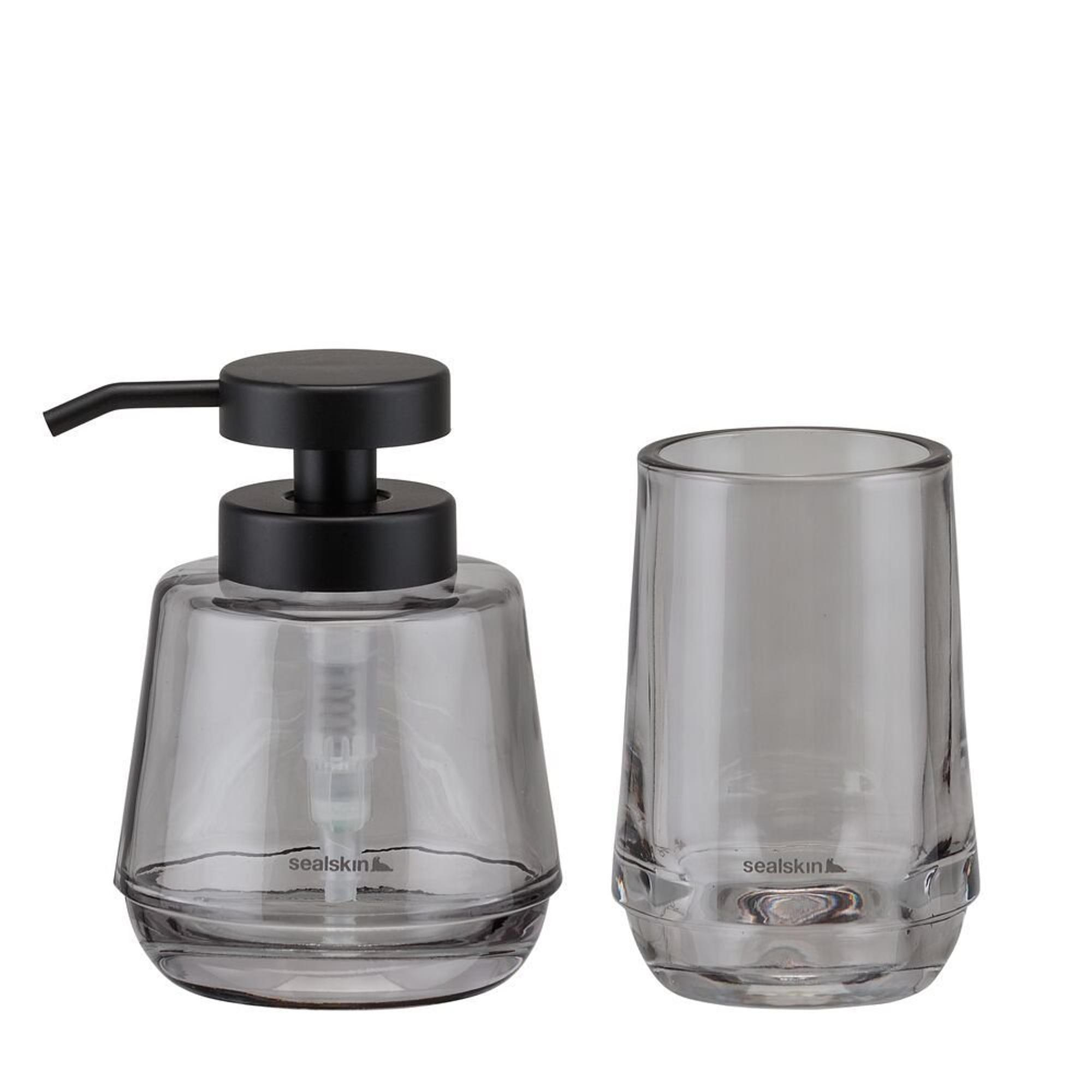 Sealskin Mood Ensemble de salle de bain - Distributeur de savon 380 ml - Gobelet à brosse à dents - Gris
