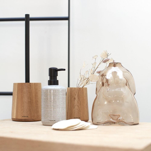 Ce gobelet élégant est la touche finale parfaite pour votre lavabo ou votre meuble de salle de bains si vous recherchez une ambiance naturelle et apaisante dans la salle de bains. Grâce au chêne chaleureux, il donne immédiatement une sensation de chez-soi et s’intègre facilement dans les petites comme dans les grandes salles de bains, de la salle de bains familiale au petit appartement. Sa forme autoportante le rend flexible à l’usage : vous le placez aisément à côté du robinet, sur une étagère ou dans une niche, exactement là où vous souhaitez avoir vos brosses à dents et votre dentifrice à portée de main. Par la combinaison d’un look robuste et de tons doux et neutres, il s’harmonise parfaitement avec les intérieurs scandinaves comme industriels. Vous choisissez ainsi non seulement une solution pratique pour organiser votre lavabo, mais aussi un détail élégant qui donne juste ce petit plus à votre salle de bains.