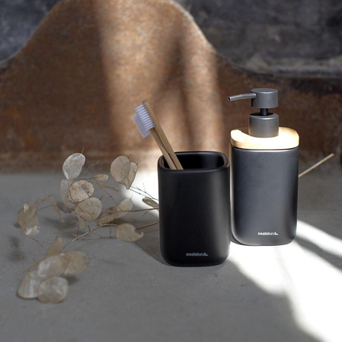 Sealskin Mind Ensemble de salle de bain - Distributeur de savon 200 ml - Gobelet à brosse à dents - Noir