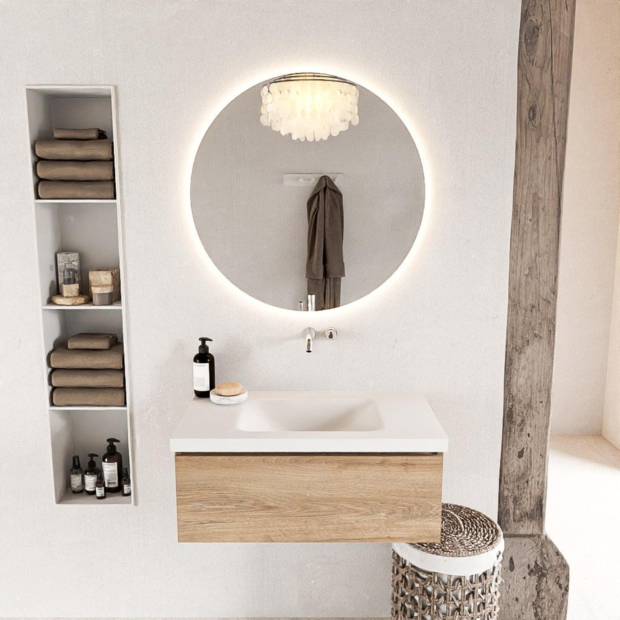 Mondiaz BUKLA Ensemble de meuble - 80x45x34cm - 0 trou de robinet - lavabo au centre - solid surface - Talc - sans poignée - 1 tiroir - Mélamine - Chêne blanchi
