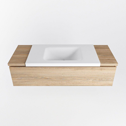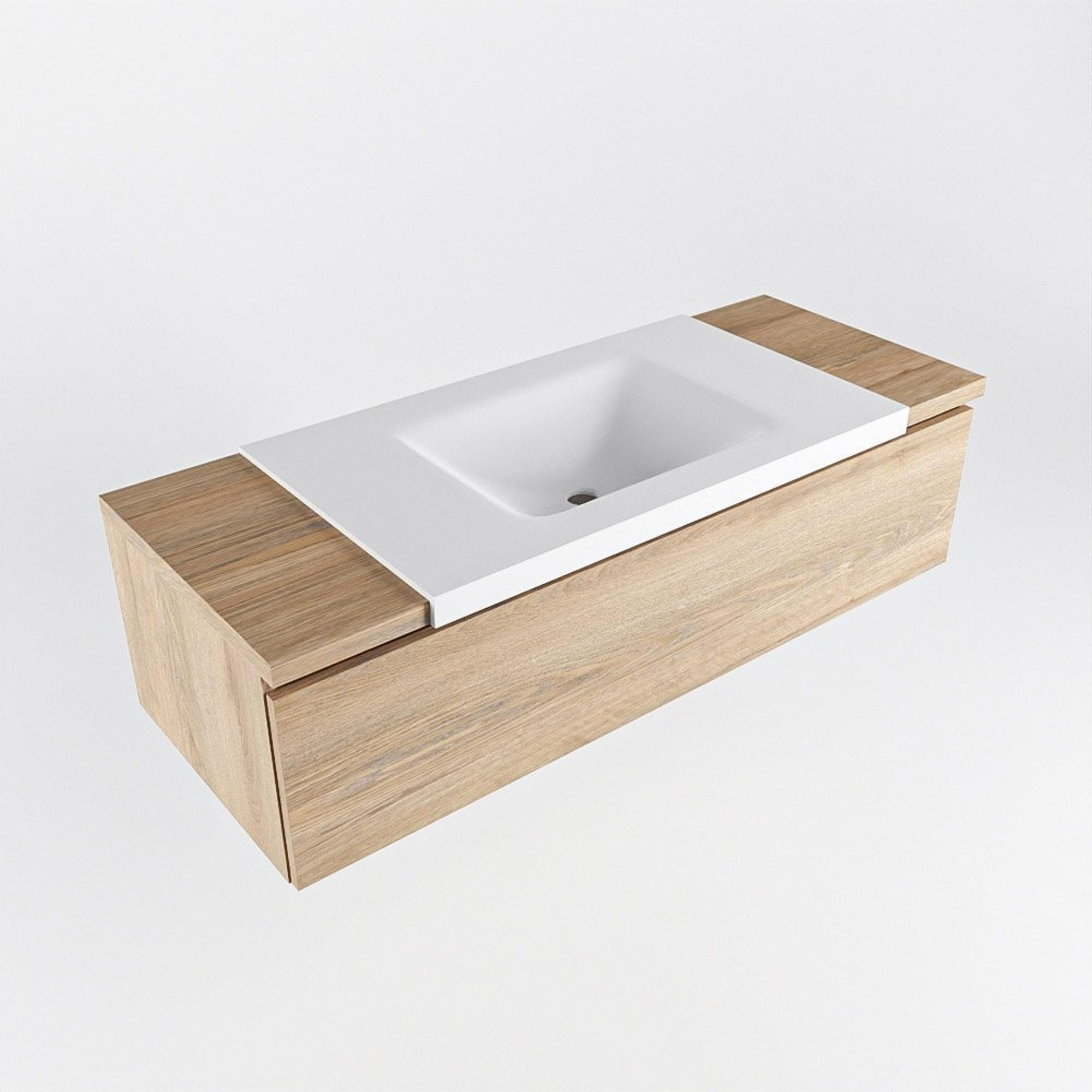Mondiaz BUKLA Ensemble de meuble salle de bain - 120x45x34cm - 0 trous de robinet - lavabo centré - solid surface - Talc - sans poignée - 1 tiroir - Mélamine - Chêne blanchi