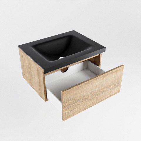 Mondiaz BUKLA Ensemble de meuble - 60x45x34cm - 0 trous de robinet - lavabo centré - solid surface - Urban - sans poignée - 1 tiroir - Mélamine - Chêne blanchi