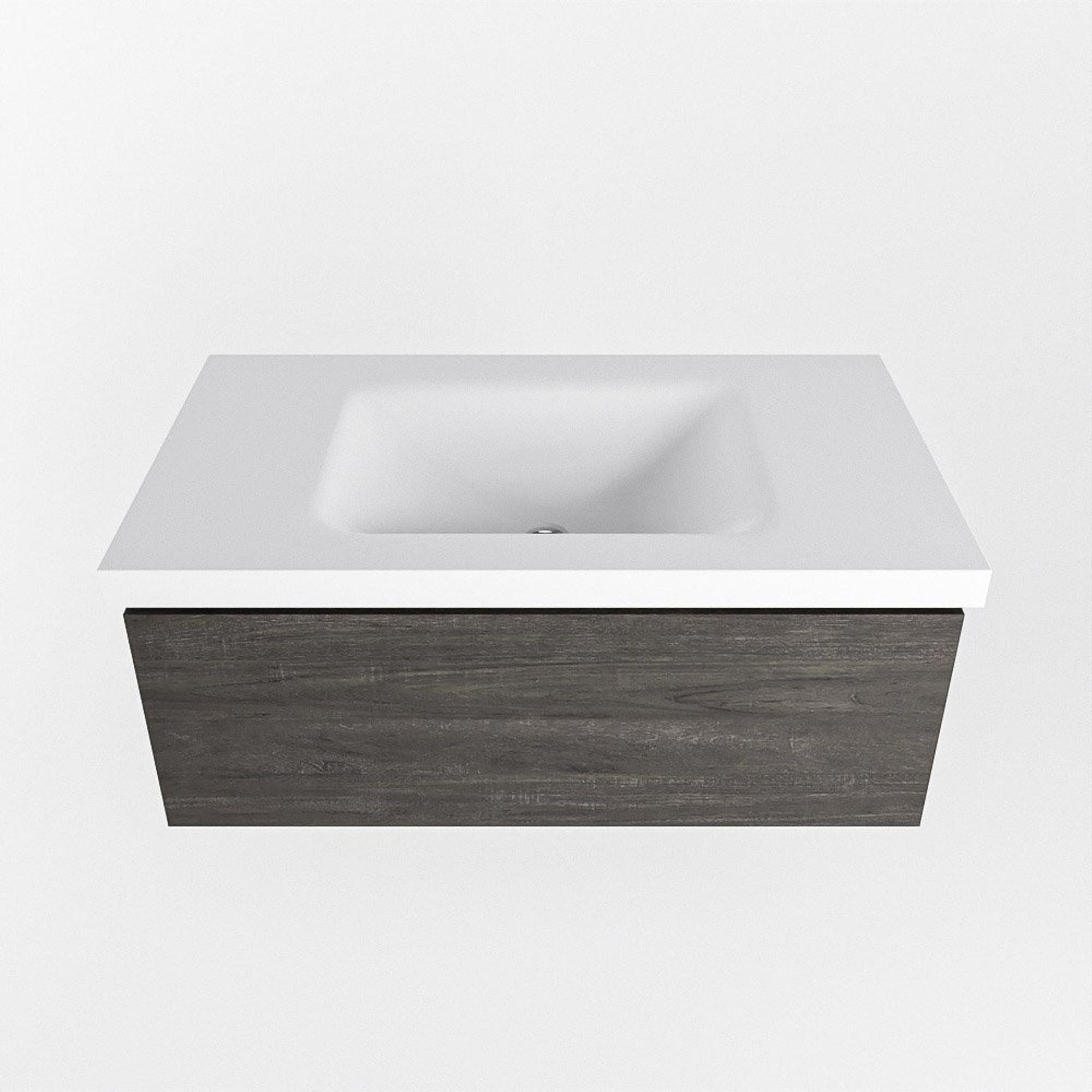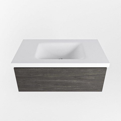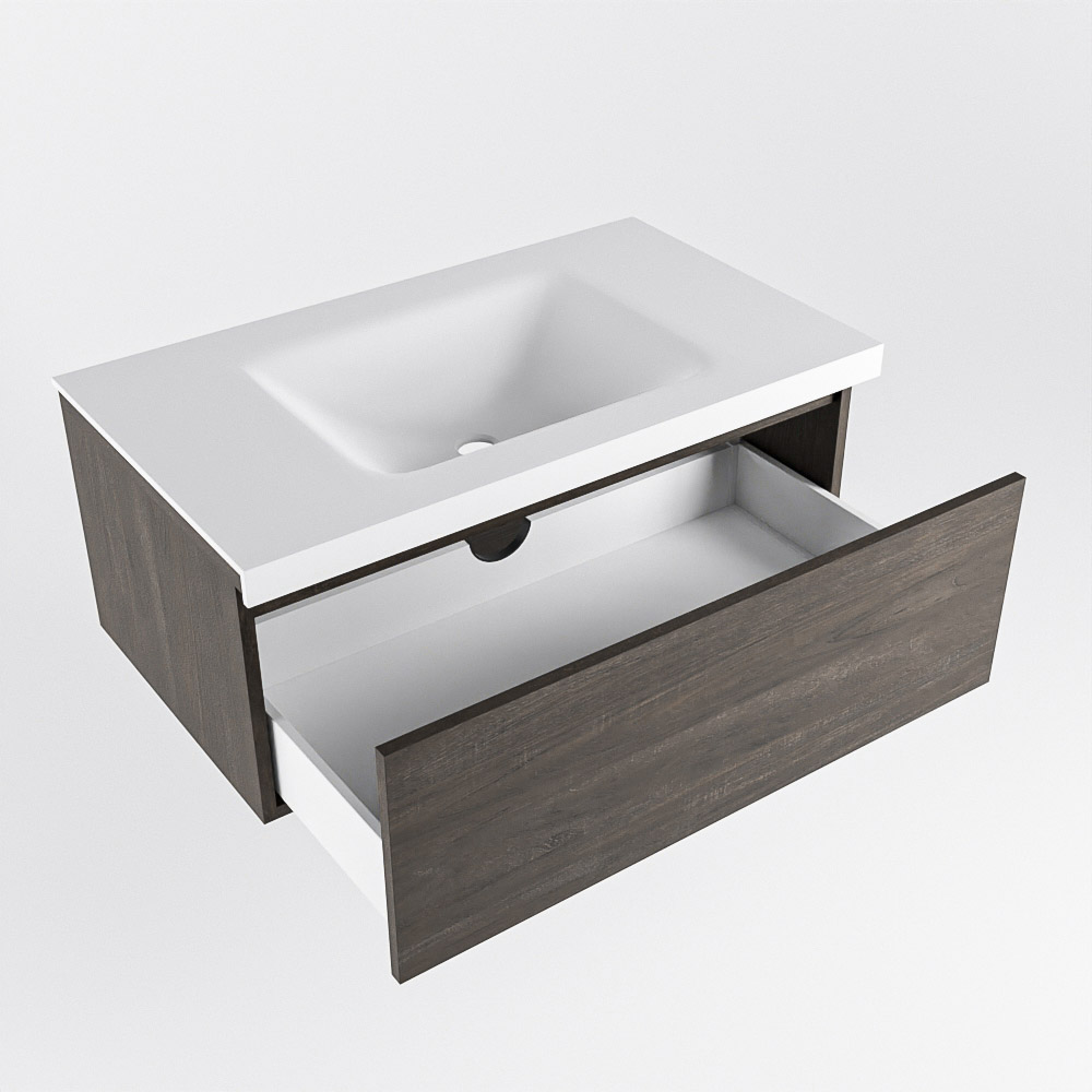 Mondiaz BUKLA Ensemble de meuble - 80x45x34cm - 0 trous de robinet - lavabo centré - solid surface - Talc - sans poignée - 1 tiroir - Mélamine - Marron foncé