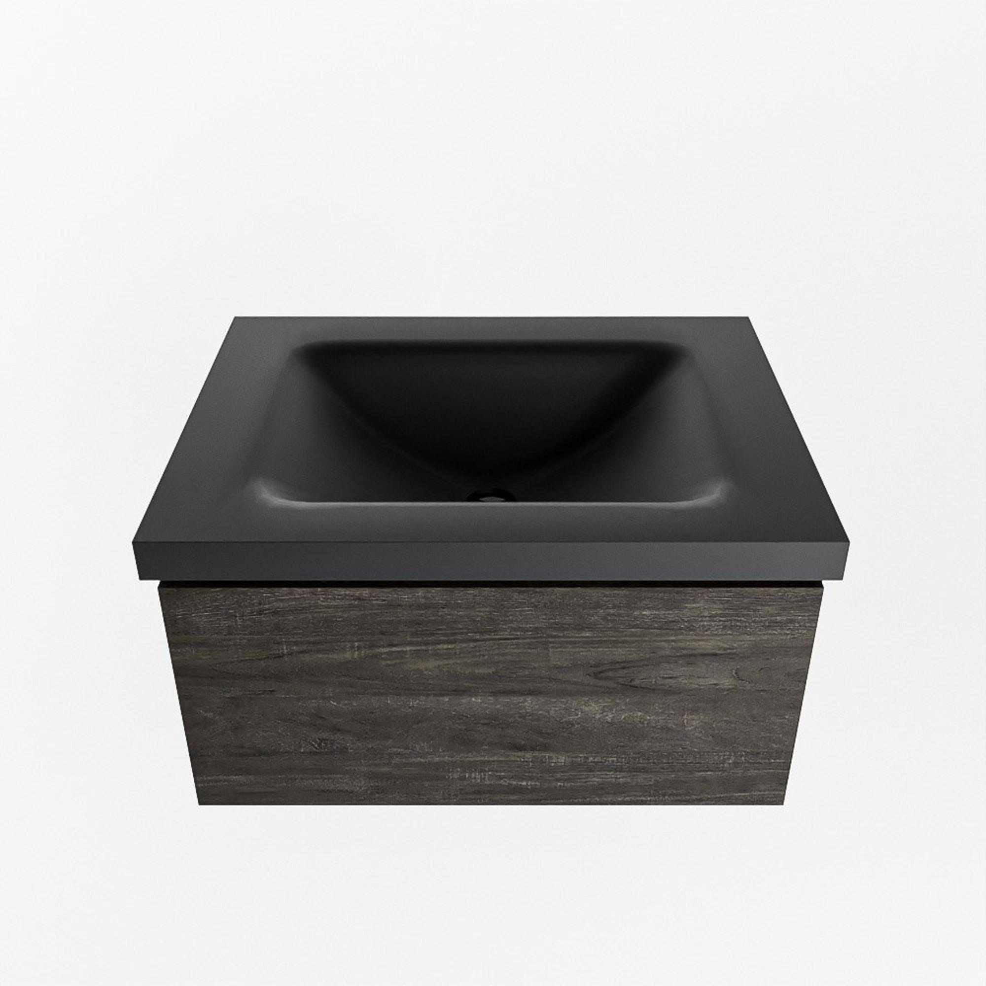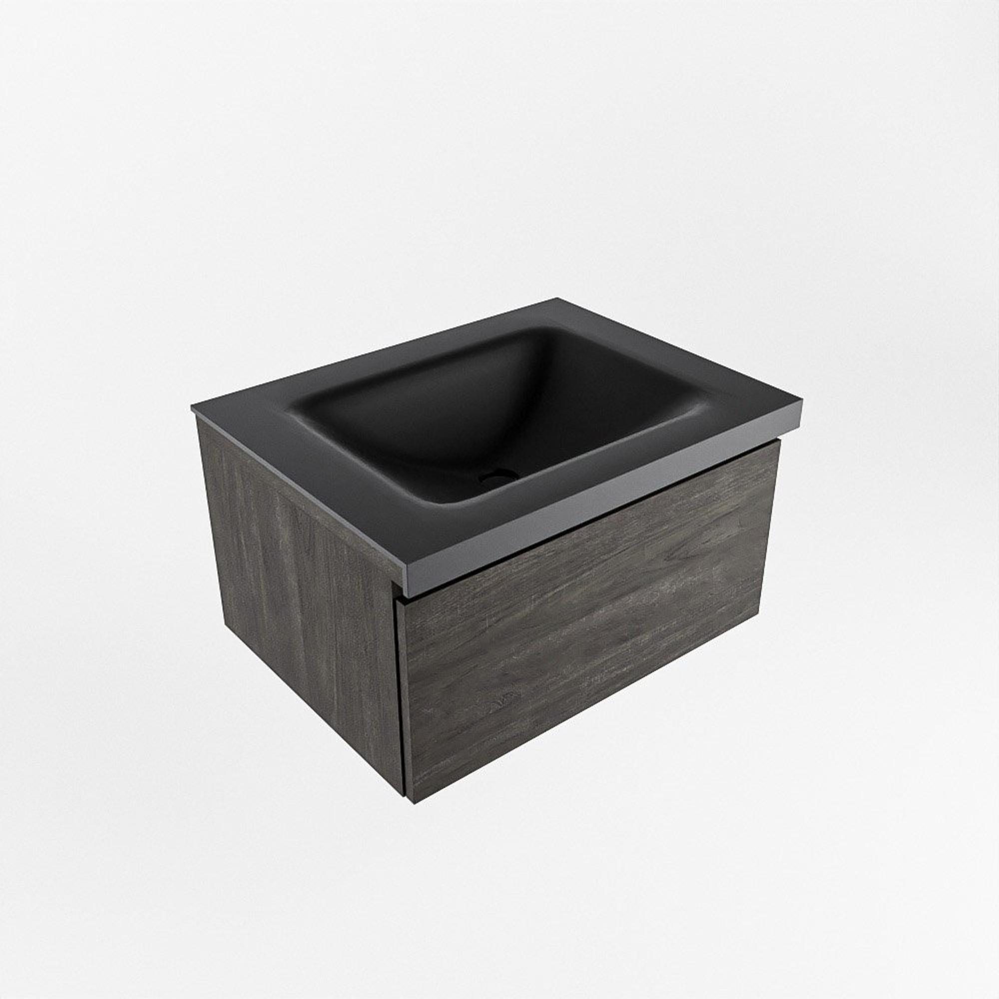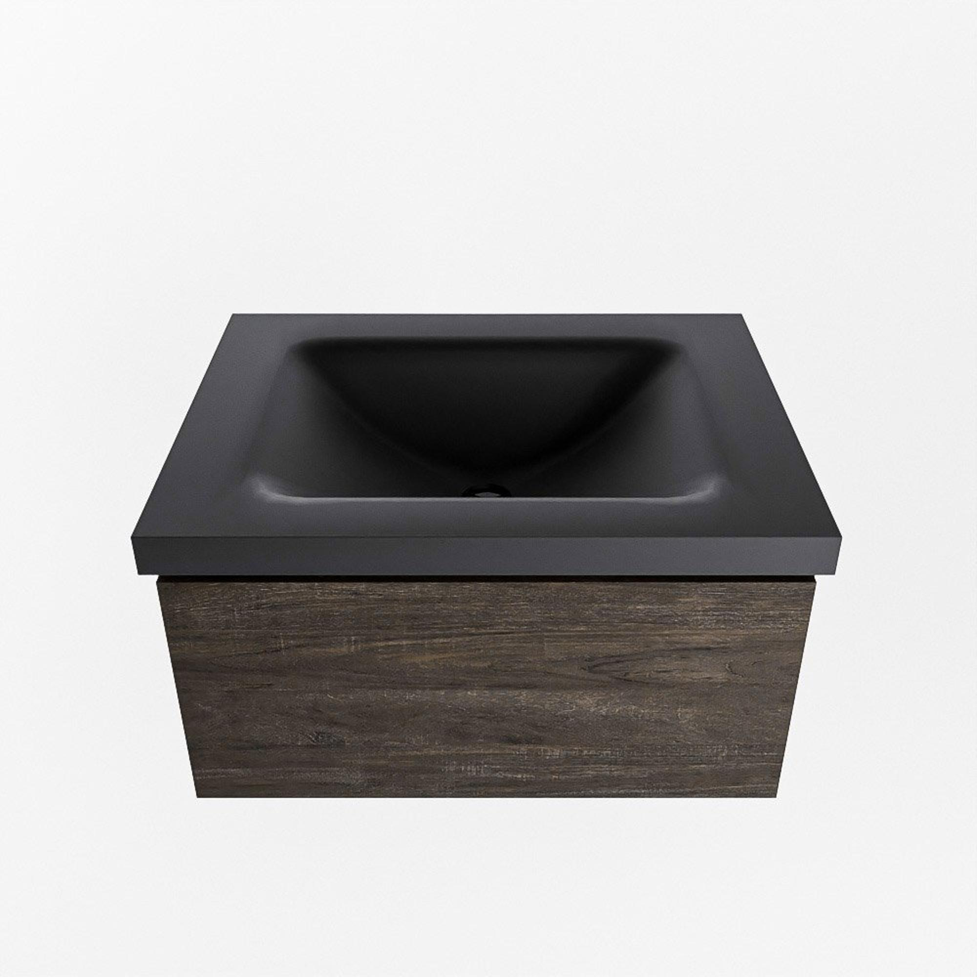 Mondiaz BUKLA Ensemble de meuble - 60x45x34cm - 0 trous de robinet - lavabo centré - solid surface - Urban - sans poignée - 1 tiroir - Mélamine - Marron foncé