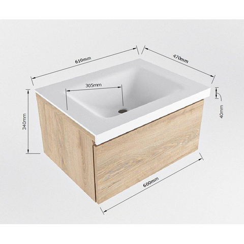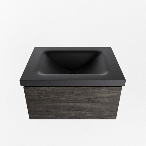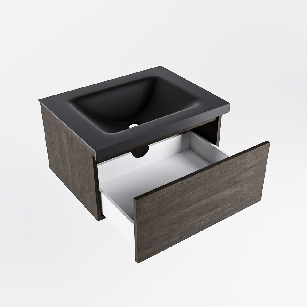 Mondiaz BUKLA Ensemble de meuble - 60x45x34cm - 1 trou de robinet - lavabo centré - solid surface - Urban - sans poignée - 1 tiroir - Mélamine - Marron foncé