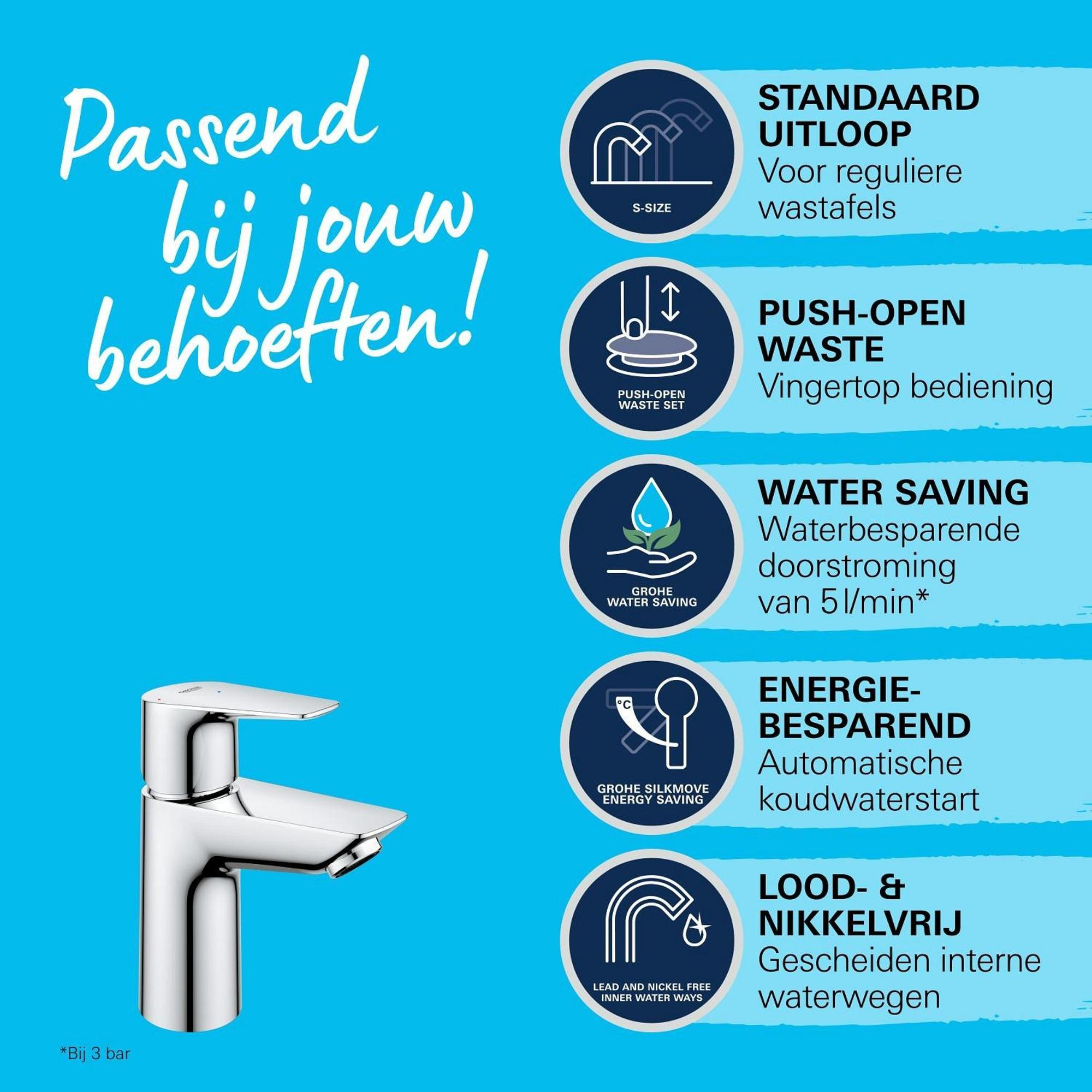 GROHE QuickFix Start Edge S-size ensemble de robinet mélangeur économiseur d'eau chrome