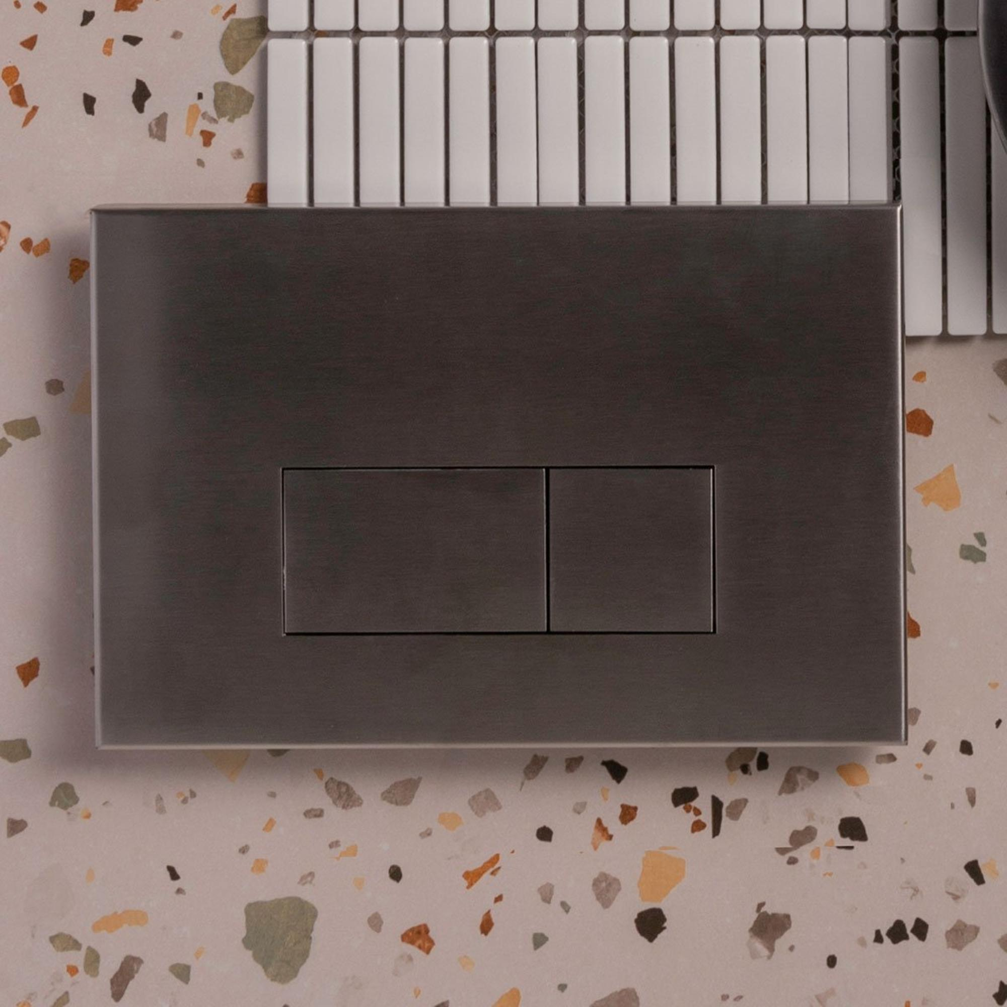 La plaque de commande QeramiQ Push Metal dégage style et classe avec ses boutons rectangulaires épurés et sa finition métallique gunmetal. Ce look contemporain s'intègre parfaitement aux designs de salles de bains modernes et ajoute une touche de luxe à votre espace toilettes. La plaque de commande est non seulement fonctionnelle, mais aussi un élément décoratif qui donne une mise à niveau à votre salle de bains.