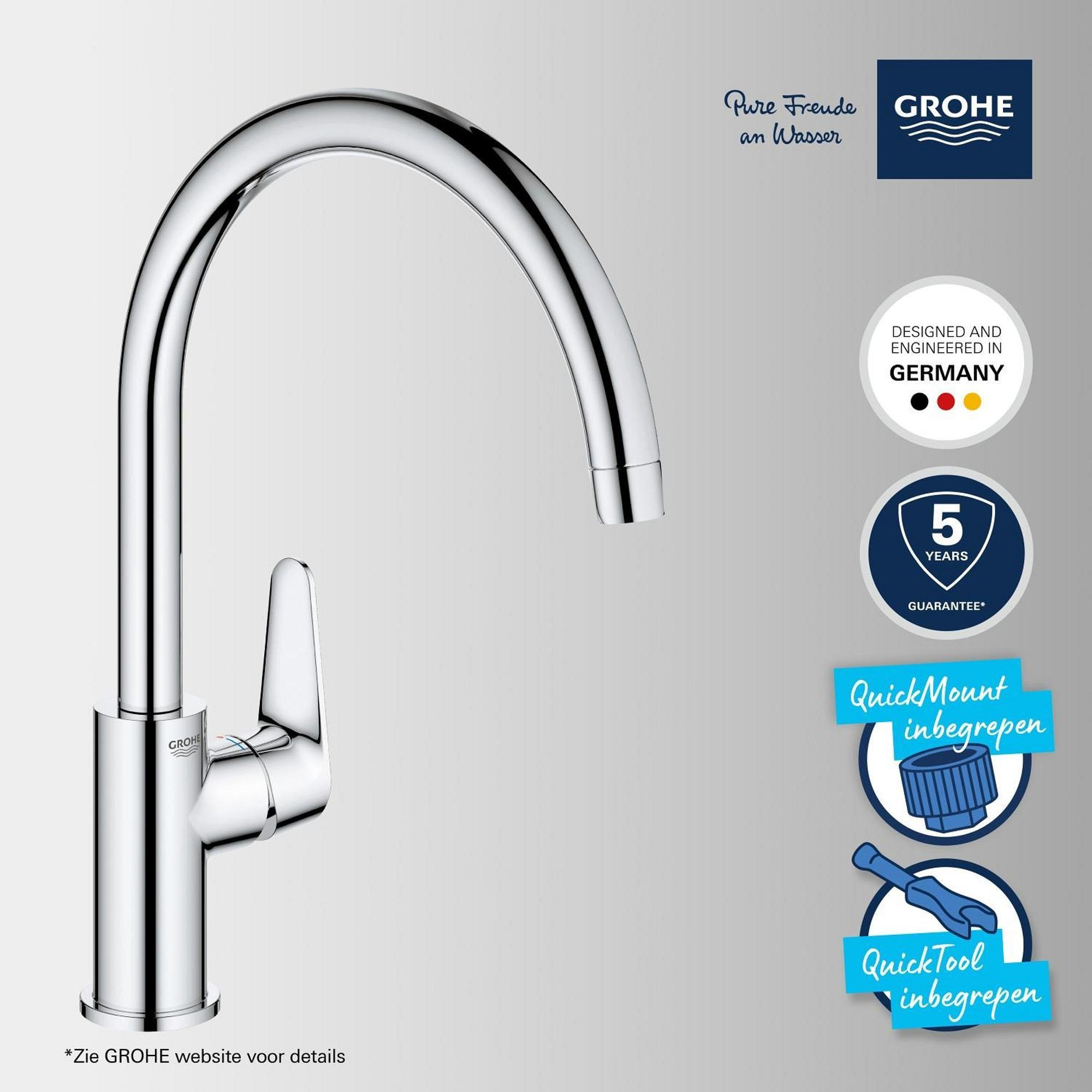 Pour un ajout de cuisine à prix compétitif qui vous offre des performances durables, optez pour le robinet de cuisine GROHE Start Curve à une poignée