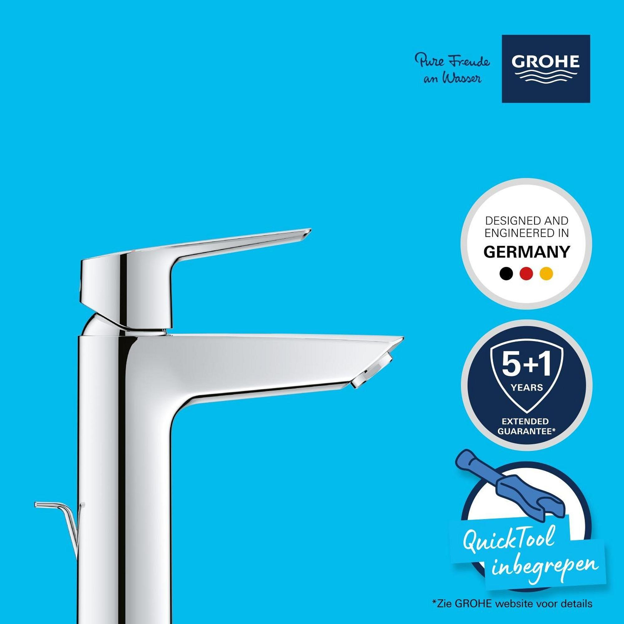 Des matériaux de qualité supérieure, un processus industriel de pointe en combinaison avec des techniques avancées, assurera de nombreuses années de service fiable. Ceci se reflète dans la garantie de fabrication de 5 ans. GROHE tient sa promesse et vous offre un produit de première qualité.