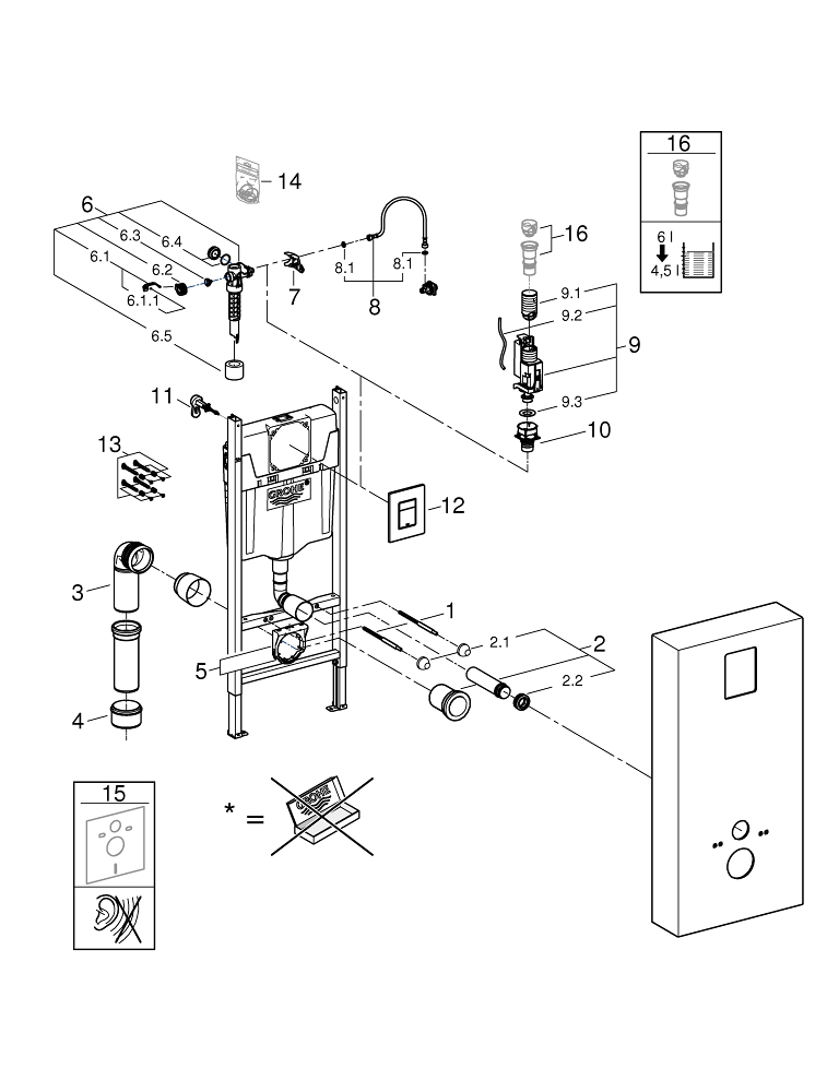 L’installation est étonnamment simple grâce au réglage en hauteur et au matériel de fixation fourni. Le raccordement d’eau peut être positionné de manière flexible – à gauche, à droite, à l’arrière ou au-dessus – afin que le système s’adapte à votre situation. Le volume de chasse est réglé en usine à 6 et 3 litres, ce qui garantit une économie d’eau efficace sans compromettre la puissance de rinçage. De plus, le réservoir fonctionne de manière ultra silencieuse (classe acoustique I, moins de 20 dBA), ce qui contribue à une atmosphère calme dans la salle de bains. Le capot de protection fourni permet au système de rester protégé pendant la phase de construction, afin que vous puissiez travailler en toute sérénité.