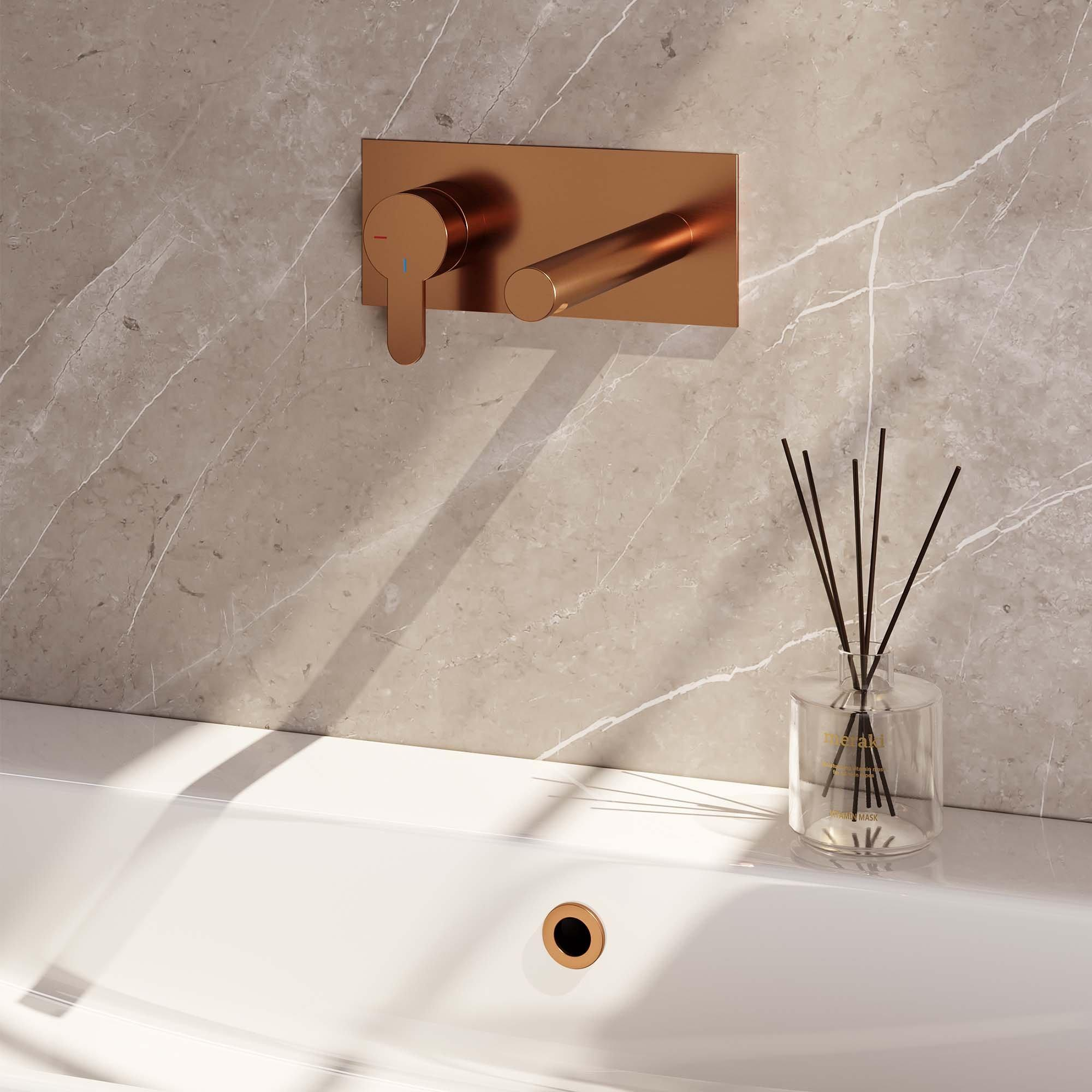 Brauer Copper Edition Robinet lavabo encastrable avec bec droit et plaque Modèle D2 Cuivre brossé PVD