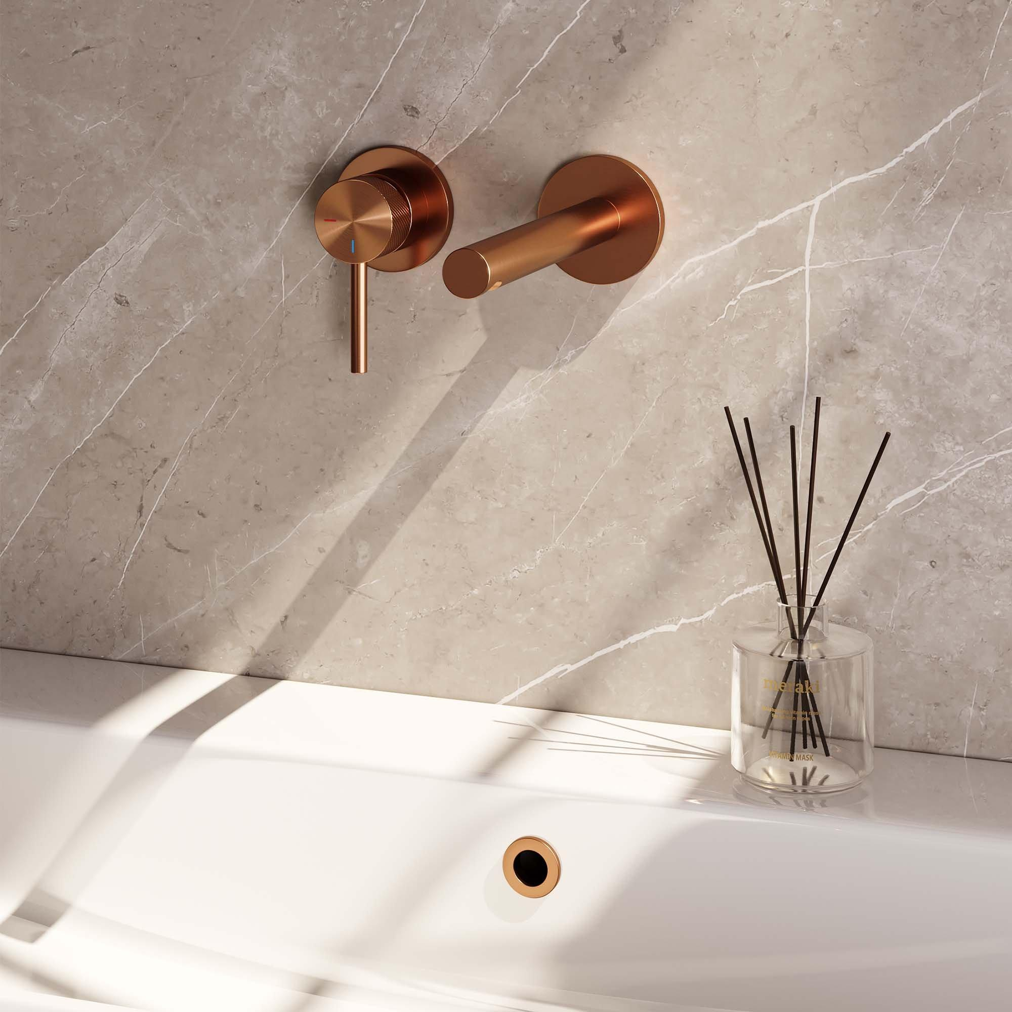 Brauer Copper Carving Mitigeur de lavabo encastré - bec droit à droite - poignée longue et fine carving - modèle A2 PVD - cuivre brossé