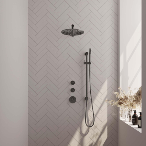 Découvrez le luxe ultime avec l'ensemble de douche pluie encastré Brauer Gunmetal Edition. La douche pluie de 30 cm crée une atmosphère de spa dans la salle de bain, tandis que les boutons lisses et la douchette à main permettent une utilisation sans effort. Le revêtement PVD assure durabilité et éclat durable, faisant de cet ensemble de douche un investissement en qualité et confort.