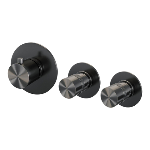 Brauer Gunmetal Edition Mitigeur Baignoire Encastré - ensemble de douche - 20cm bec - partie encastrable - 3 boutons lisses - douchette à main 1 fonction - PVD - gunmetal brossé