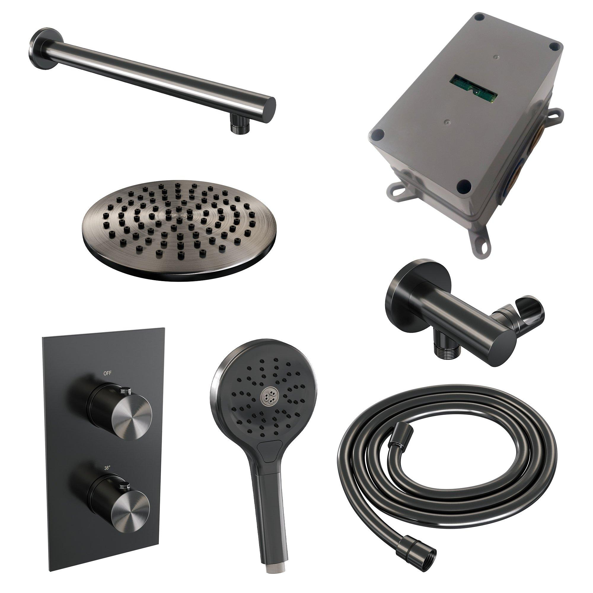 Brauer Gunmetal Edition Ensemble de douche de tête encastré - douche de tête 20cm - bouton lisse - douchette ronde 3 jets - PVD - gunmetal brossé
