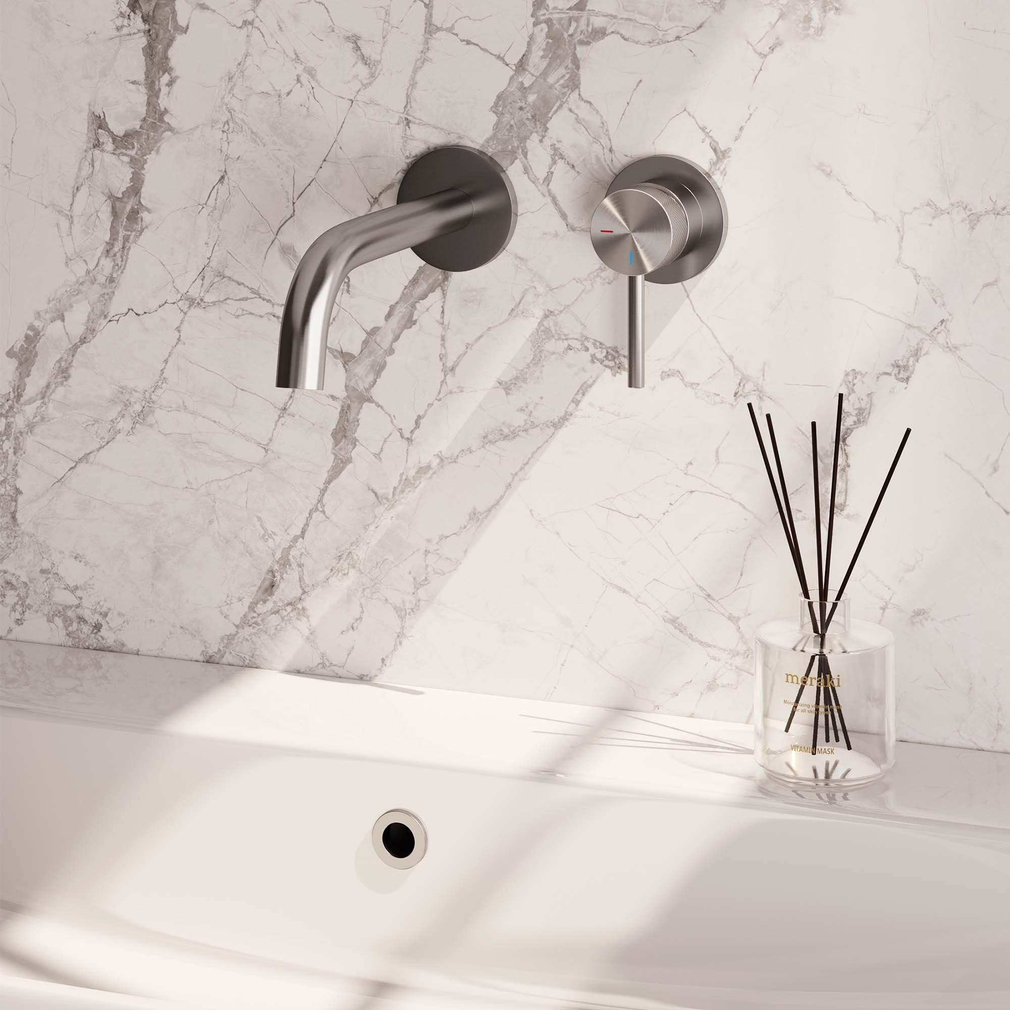 Le Brauer Brushed Carving Mitigeur de lavabo combine un design contemporain avec une fonctionnalité moderne. Le bec courbé sur le côté gauche et la poignée longue et fine avec détails carving créent une apparence minimaliste et épurée. La finition PVD en inox brossé ajoute une touche de luxe au robinet, ce qui le rend parfaitement adapté aux salles de bains modernes.