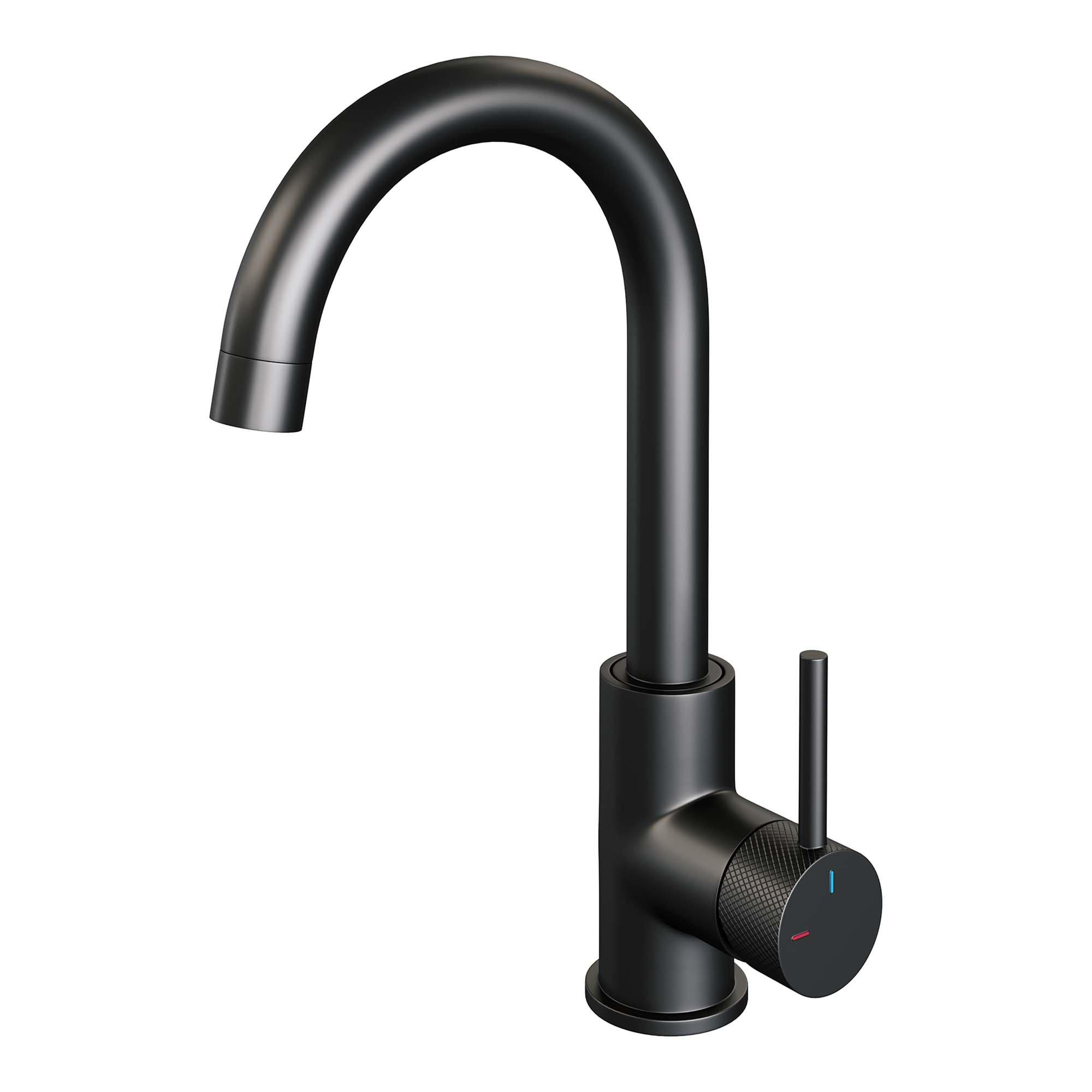 Avec son design haut sur plage, ce mitigeur de lavabo attire immédiatement le regard et donne une apparence luxueuse à votre lavabo. La finition noire mate est intemporelle et s'adapte parfaitement à différents styles de salle de bains, du moderne à l'industriel. Le robinet n'est pas seulement un élément fonctionnel dans la salle de bains, mais aussi un accessoire élégant qui rehausse l'apparence générale de la pièce.
