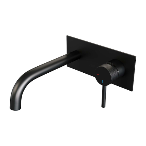 Brauer Black Carving Mitigeur de lavabo encastré - bec verseur courbé à gauche - longue poignée étroite carving - plaque de recouvrement - noir mat