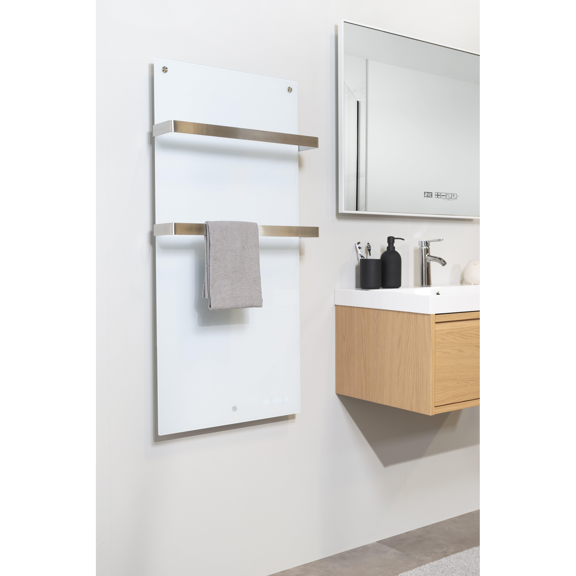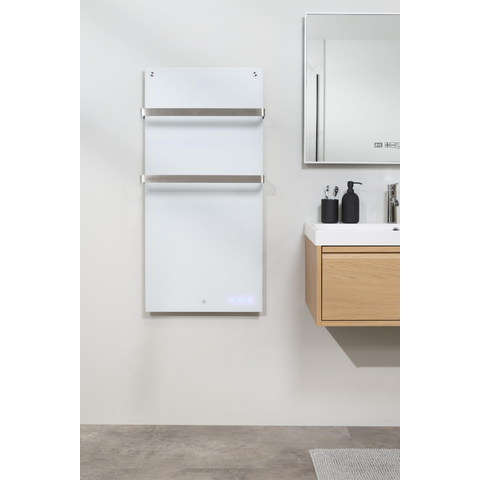 Eurom Sani 800 Comfort Panneau Infrarouge salle de bain 115x55cm Wifi 800watt Verre BlancLe Eurom Sani 800 Wifi avec sa puissance de 800 Watt est le grand frère du Sani 400 Wifi et du Sani 600 Wifi, et donc parfait pour être accroché dans une grande salle de bain. Grâce au panneau infrarouge, il fait rapidement agréablement chaud dans la salle de bain, car la chaleur est directement perceptible sur la peau. Pratique aussi : le minuteur hebdomadaire réglable. Réglez-le sur les heures où vous êtes dans la salle de bain, et vous n'oublierez plus jamais d'allumer ou d'éteindre ce chauffage. Vous agissez ainsi aussi de manière économique !