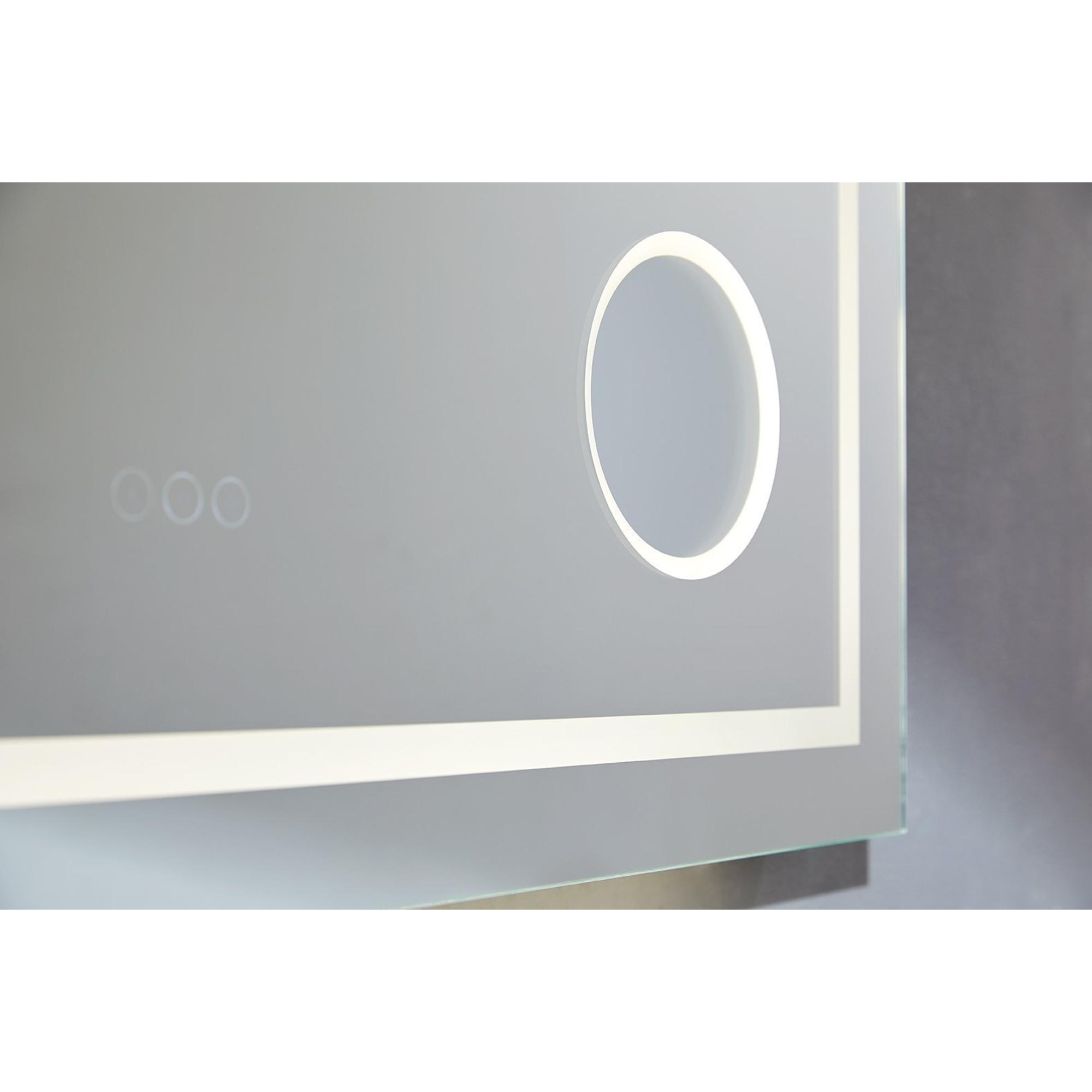 Thebalux miroir modèle I 120x75 aluminium bande lumineuse intégrée autour dans le miroir équipée de LED LED indirecte en partie inférieure Bluetooth commande tactile chauffage de miroir miroir grossissant éclairé et prise de courant