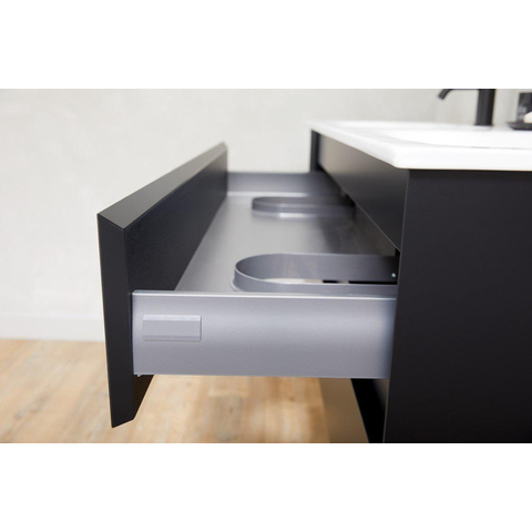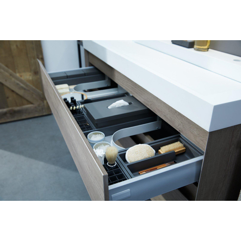 Thebalux Type meuble sous lavabo 120x45x50cm 2 découpes 2 tiroirs à fermeture douce Sans poignée MDF/panneau de particules chêne grain.