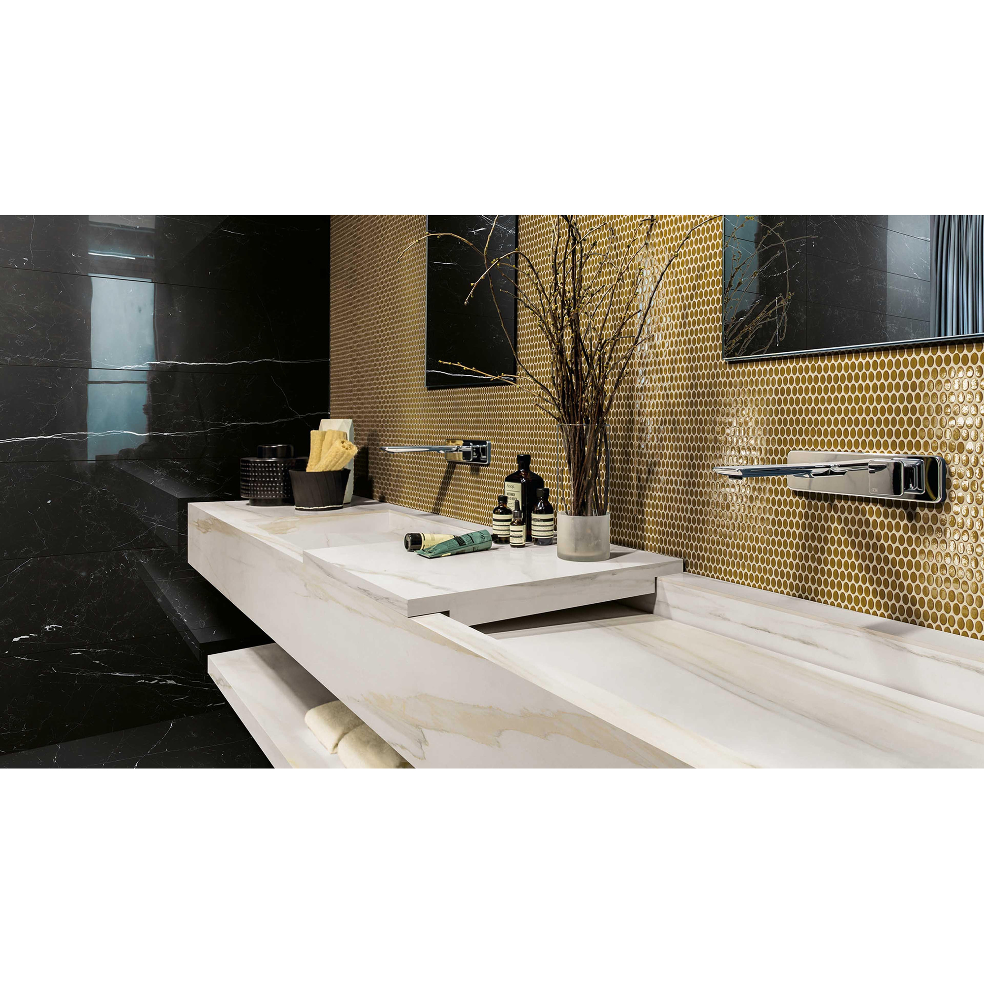Ce carrelage se caractérise par son aspect élégant. Le motif Marquinia profond ajoute une touche de luxe à chaque espace. Que vous ayez un aménagement moderne ou classique, ce carrelage s’intègre parfaitement à différents styles d’intérieur. La finition brillante assure une magnifique réflexion de la lumière, ce qui donne à la pièce une impression de clarté et d’espace.