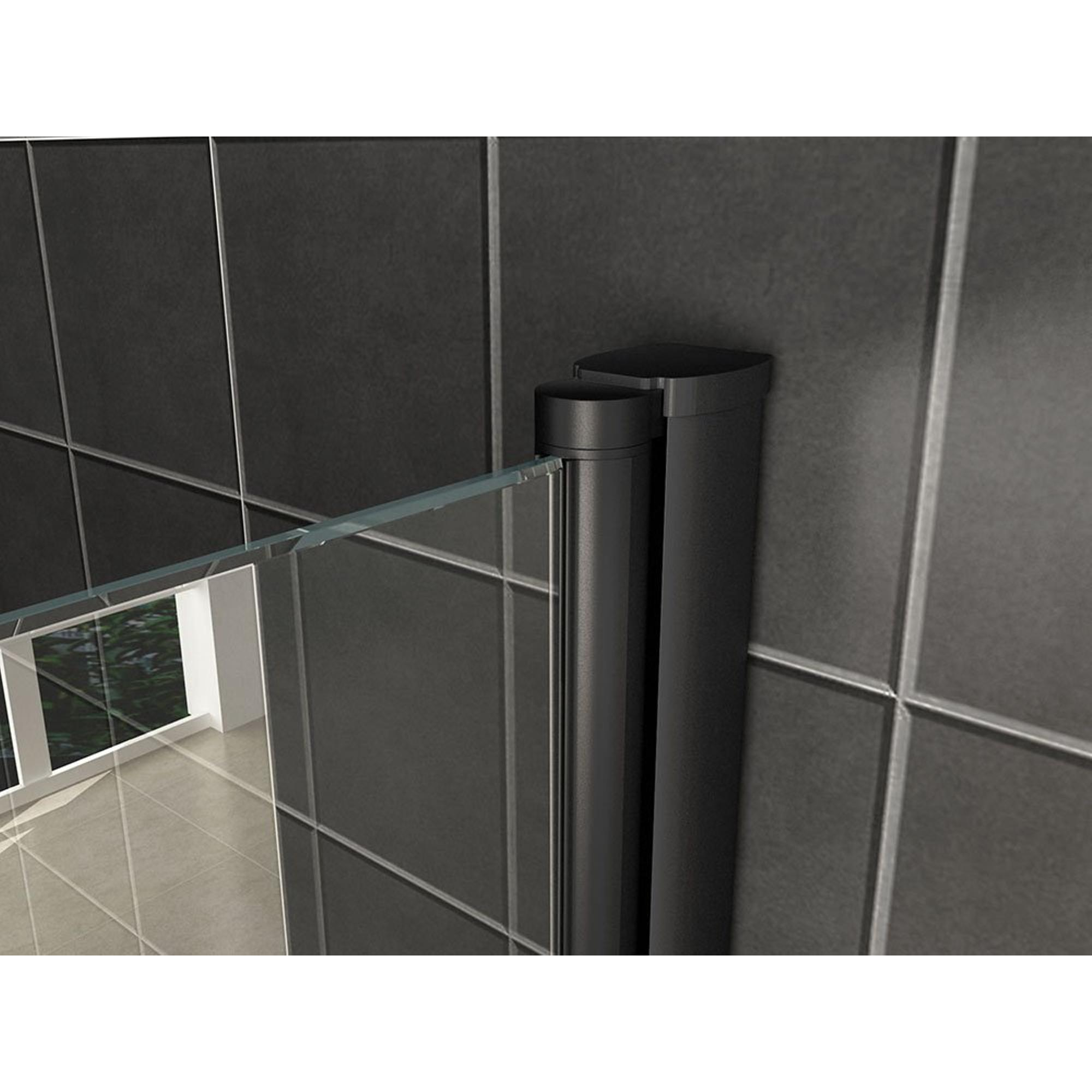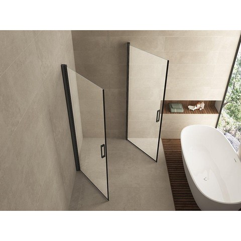 La cabine est équipée de deux portes battantes de 90 cm de large et 200 cm de haut, que vous pouvez ouvrir vers l’intérieur comme vers l’extérieur. Cela vous offre une liberté de mouvement maximale et rend l’entrée et la sortie particulièrement confortables, même dans les salles de bains plus petites. Les portes battantes sont montées sur des profils muraux noir mat réglables jusqu’à 20 mm, ce qui vous permet d’ajuster précisément la cabine au mur. Cette flexibilité assure un ajustement parfait et évite les problèmes liés aux murs irréguliers. Vous bénéficiez ainsi d’une installation sans souci et d’une finition soignée qui dure des années.