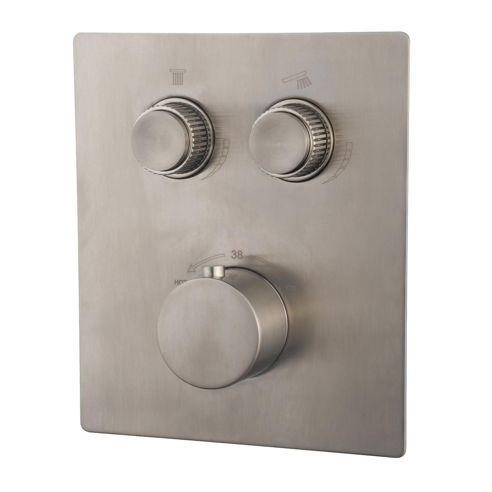 Wiesbaden Caral Klik Pro robinet de douche thermostatique encastré 2 fonctions avec partie encastrable en acier brossé