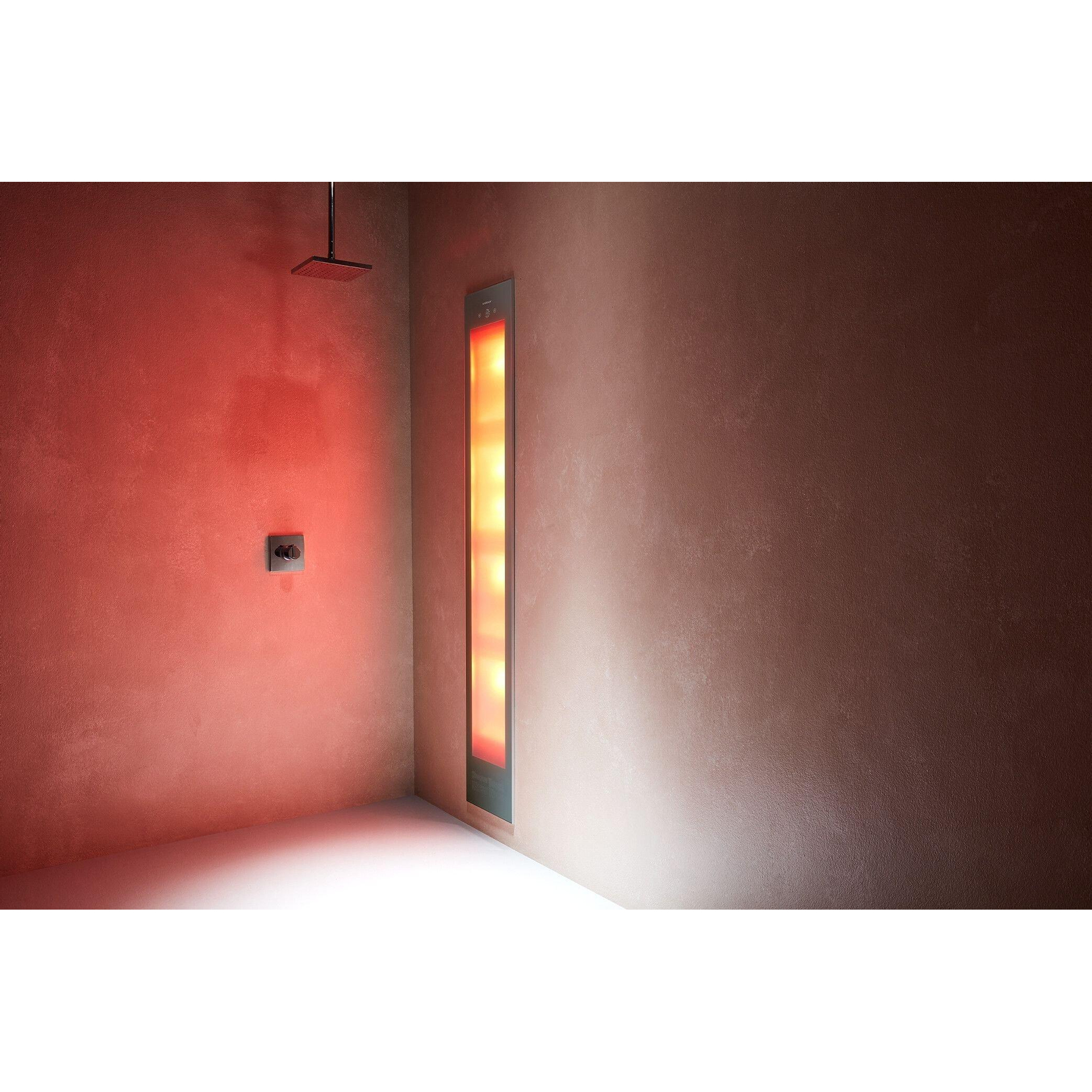 Imaginez une salle de bains qui n’est pas seulement fonctionnelle, mais qui offre également une oasis de calme et de bien-être. Avec ce système encastré innovant, vous faites l’expérience d’une combinaison unique de chaleur et de lumière qui chouchoute votre peau et détend profondément vos muscles. La forme compacte permet de l’intégrer facilement dans pratiquement chaque espace de douche, tandis que le design moderne constitue un ajout élégant à l’aménagement de votre salle de bains. Grâce à la technologie intégrée UV et infrarouge, vous profitez chaque jour des effets bienfaisants de la lumière du soleil et de la chaleur, sans devoir quitter votre domicile. Ce produit transforme votre douche quotidienne en un moment de bien-être luxueux, durant lequel votre corps est stimulé et votre esprit s’apaise. Vous vous offrez ainsi le cadeau de la détente et de la vitalité, jour après jour.