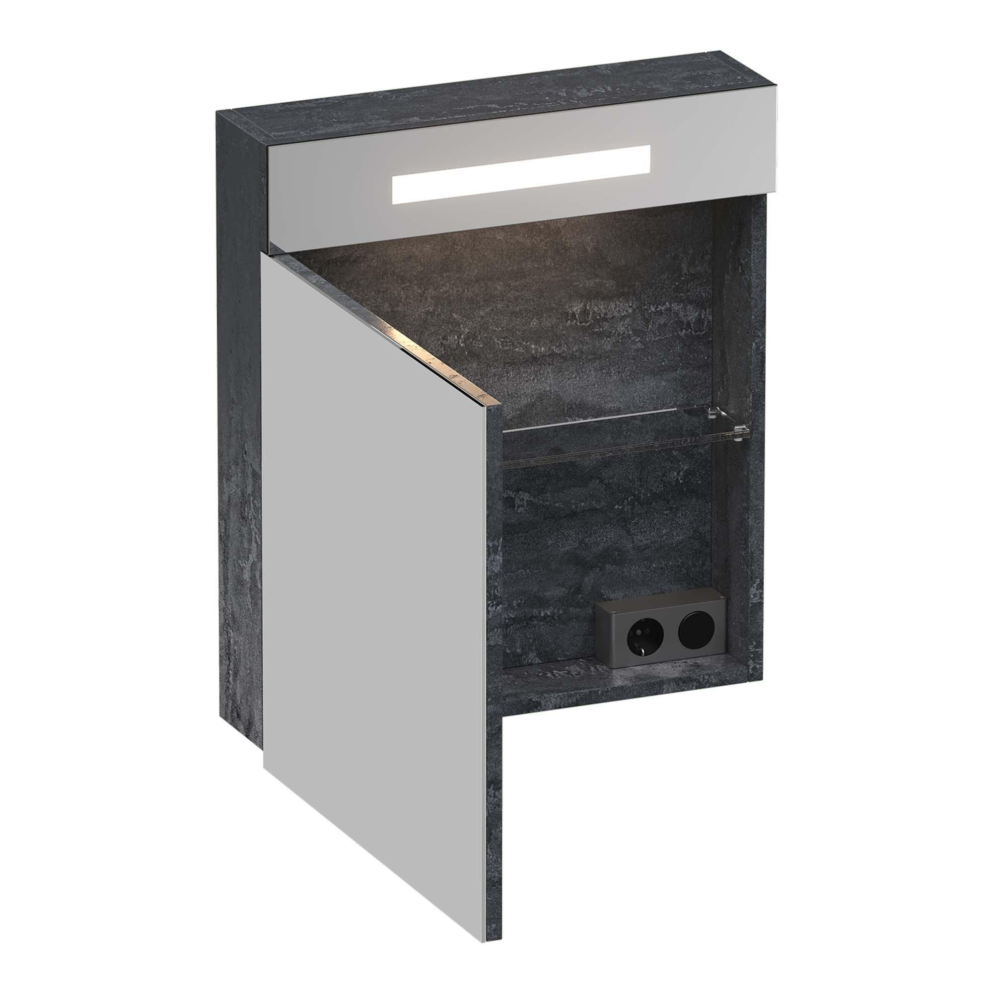 BRAUER Promise armoire de toilette - 60x70x15cm -- avec éclairage direct 1 porte de miroir simple battant à gauche Damas