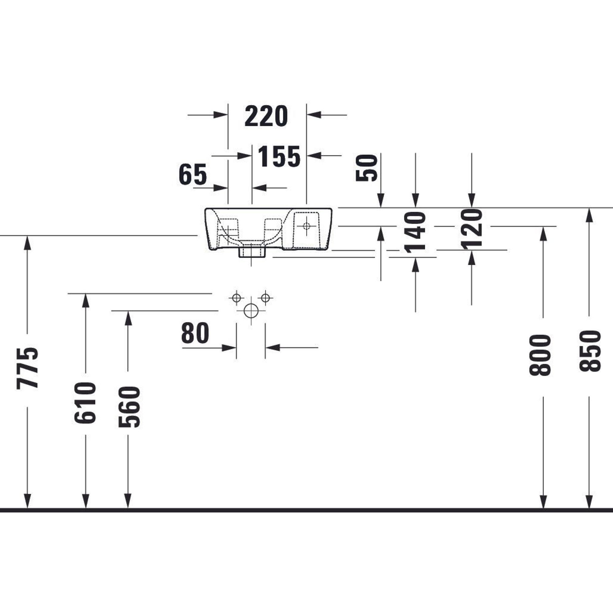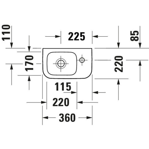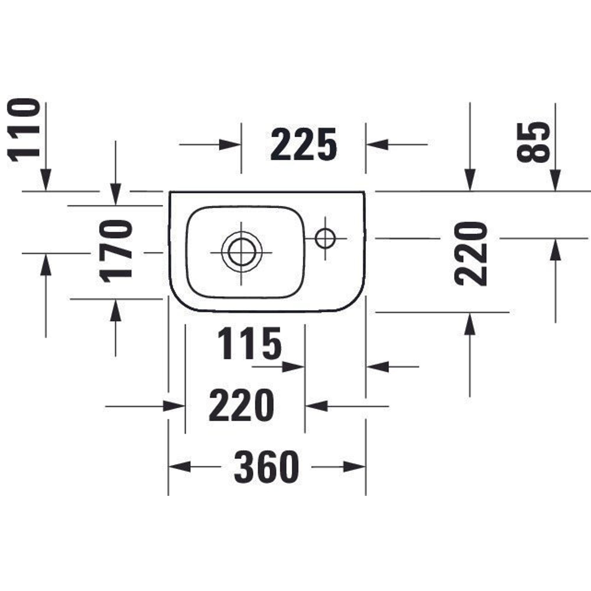 - 1 trou de robinetterie à droite, adapté à un petit robinet de lave-mains
