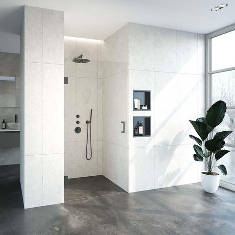 Vous recherchez une solution spacieuse et élégante pour une niche dans votre salle de bains, sans profils gênants ni détails trop présents ? Alors cette porte battante de luxe est un choix particulièrement intéressant. Grâce à la largeur généreuse d’environ 100 cm, vous entrez et sortez confortablement, même avec un panier de douche ou de jeunes enfants avec vous. Le design épuré, sans profil, avec verre transparent donne à votre salle de bains une impression d’espace et s’intègre parfaitement dans les salles de bains modernes, industrielles et de style hôtel chic. Les détails gunmetal brossés apportent juste ce qu’il faut de caractère supplémentaire, tandis que le traitement du verre fait en sorte que le nettoyage ne devienne pas un combat quotidien. Idéal si vous recherchez une porte de niche haut de gamme qui ne soit pas seulement esthétique, mais aussi pratique et durable à l’usage au quotidien.