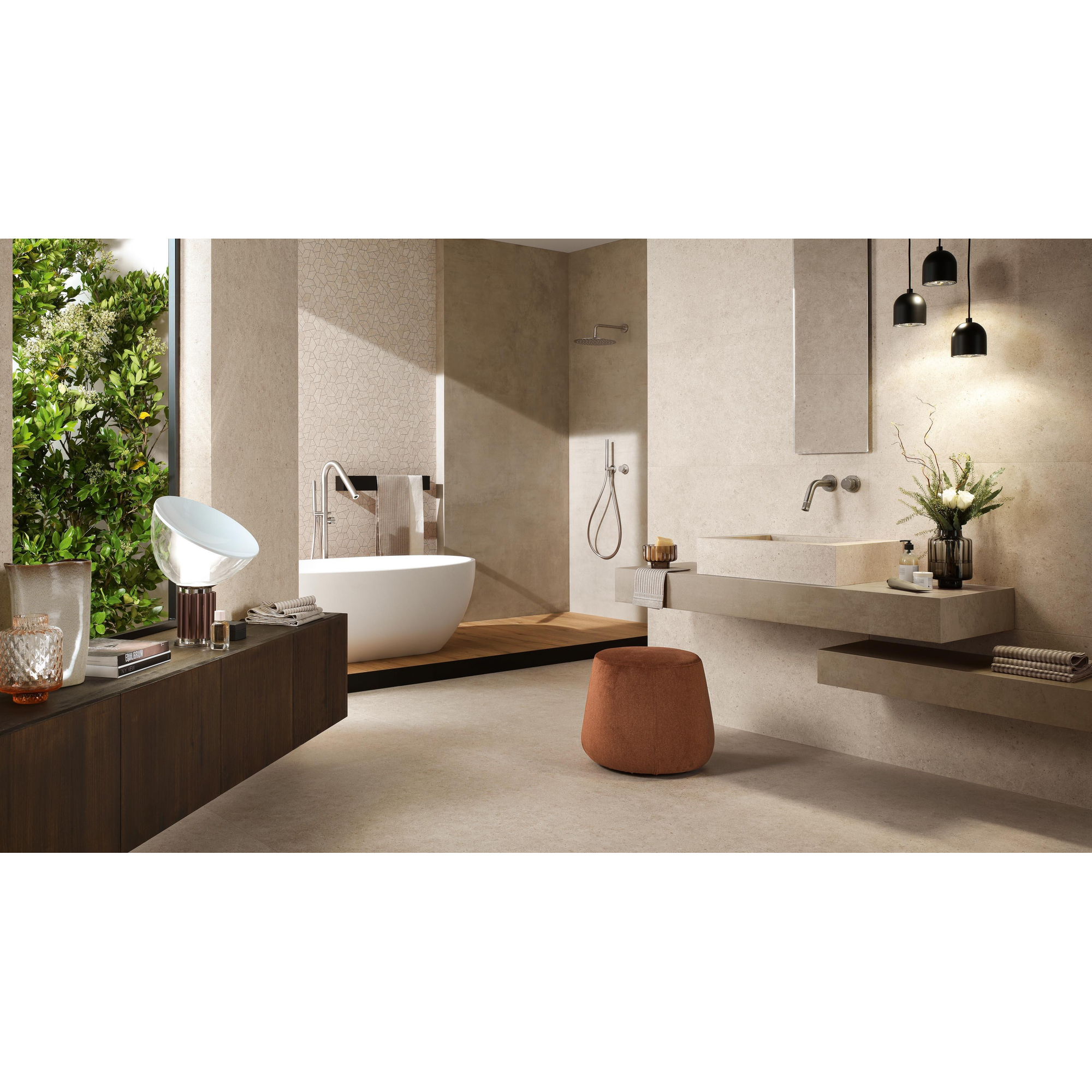La structure pierre subtile et la teinte ivoire du Atlas concorde Boost stone carreau de sol 60x60cm 9mm mat rect. R10 ivoire confèrent à votre salle de bains une allure chaleureuse et haut de gamme. La finition mate évite les reflets gênants et s'harmonise parfaitement avec une douche à l'italienne moderne, une baignoire autoportante ou un meuble de salle de bains épuré. Grâce aux bords rectifiés, vous pouvez travailler avec des joints fins, ce qui agrandit visuellement l'espace et crée une belle continuité avec les carreaux muraux de couleur identique ou contrastée. Ce carreau de sol se combine très bien avec une robinetterie noire, des mitigeurs en inox et des meubles en bois pour une atmosphère de bien-être luxueuse.