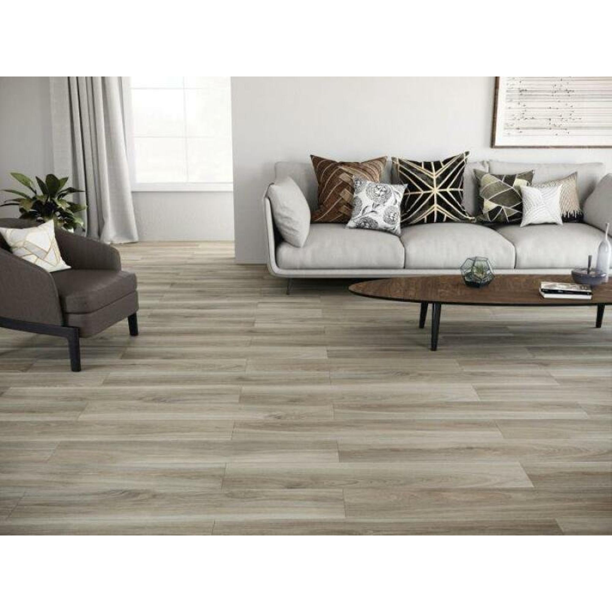 Comme ce carreau est en céramique, vous bénéficiez de nombreux avantages pratiques par rapport au vrai bois. Un échantillon vous permet de sentir immédiatement que la surface est dure, résistante aux rayures et mate, sans que vous ayez à craindre le gauchissement, les taches ou un entretien intensif. De plus, le carreau est résistant au gel et convient comme carrelage de sol et mural, ce qui le rend également intéressant pour les sols continus, les toilettes ou par exemple une buanderie. En combinaison avec un chauffage par le sol, l’ensemble reste agréablement confortable. En testant d’abord un échantillon, vous remarquez vous-même à quel point la structure est agréable au toucher, à quel point il est facile à nettoyer et si cela correspond à l’usage dans votre foyer.