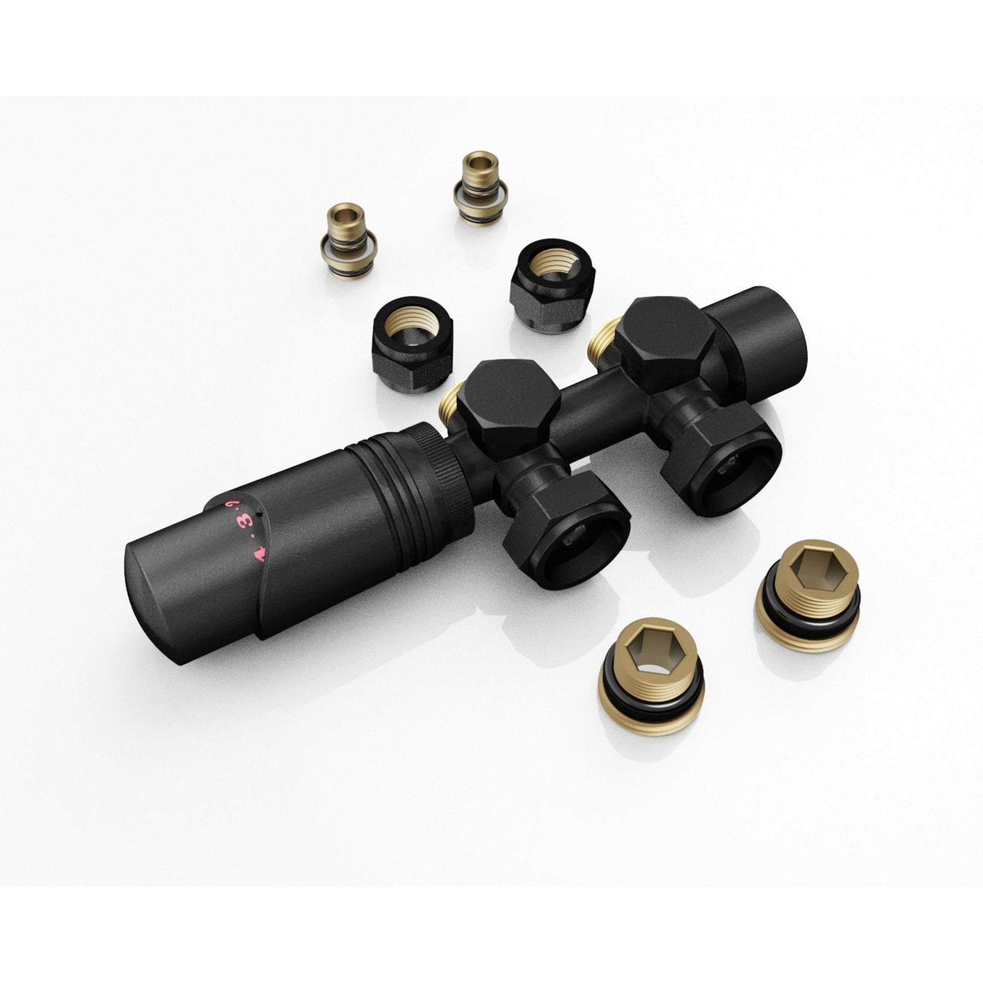 Rosani Classic ensemble de raccordement de radiateur universel droit et coudé noir mat