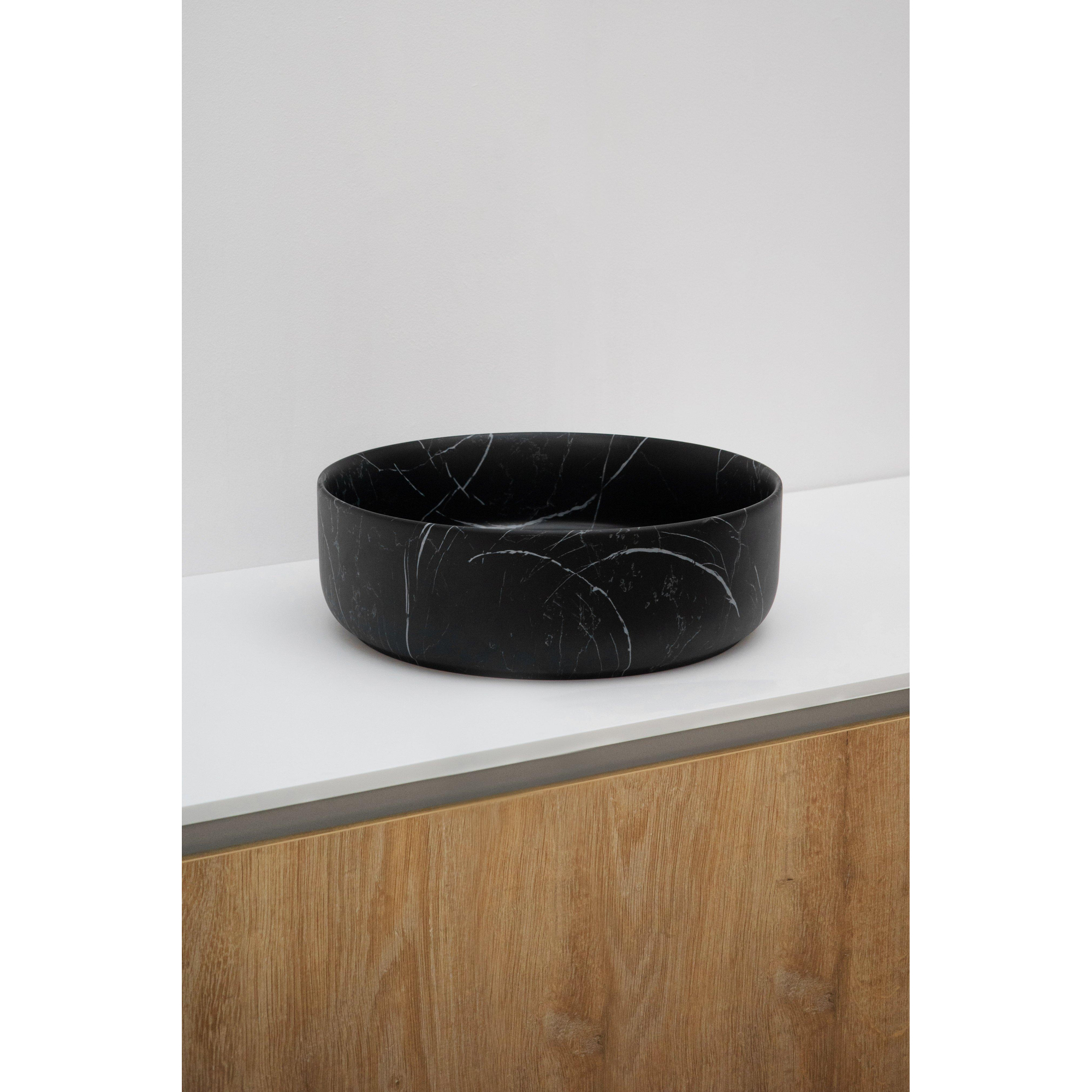 Riho Marmic Round Vasque à poser 34.6x34.6x11.4cm Céramique ronde effet marbre noir mat