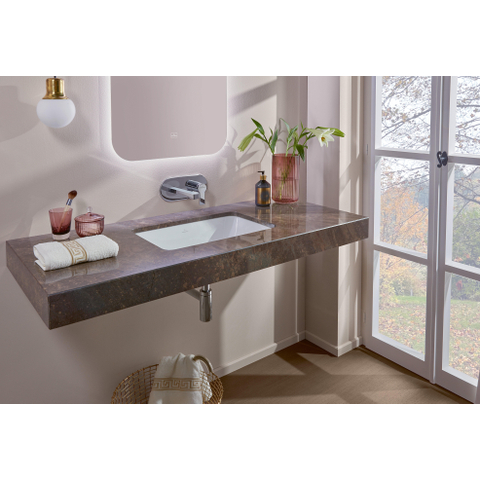Ce lavabo encastré est conçu pour être installé par le dessus dans le plan ou le meuble de salle de bains, de sorte que l’ensemble paraisse net et intégré. La forme rectangulaire et les lignes fines assurent une apparence apaisante, sans fioritures superflues. Cela rend ce modèle particulièrement adapté aux salles de bains modernes, scandinaves ou minimalistes, où la symétrie et la simplicité sont importantes. Comme le lavabo se fond subtilement dans le meuble, le plan reste visuellement spacieux et ordonné, ce qui fait une grande différence de perception surtout dans les petites salles de bains. Vous créez ainsi une composition de lavabo élégante qui non seulement est esthétique, mais aussi logiquement et pratiquement agencée.